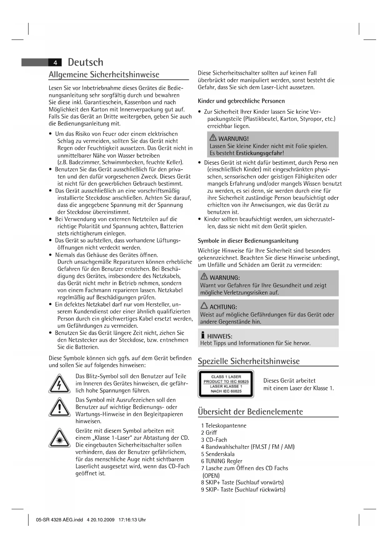 05-SR 4328 AEG.indd 4 20.10.2009 17:16:13 UhrDeutsch