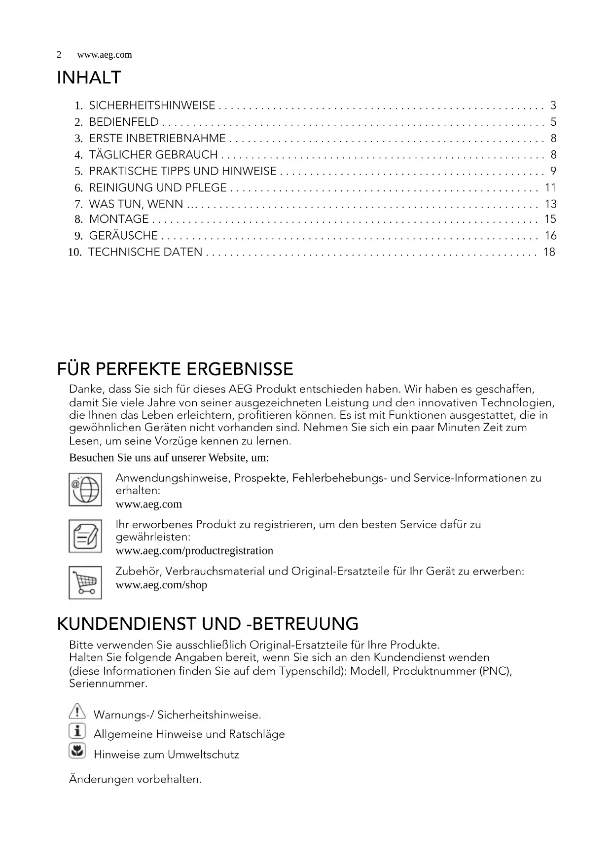 FÜR PERFEKTE ERGEBNISSE Danke, dass Sie sich für dieses AEG Produkt entschieden haben. Wir haben es geschaffen,