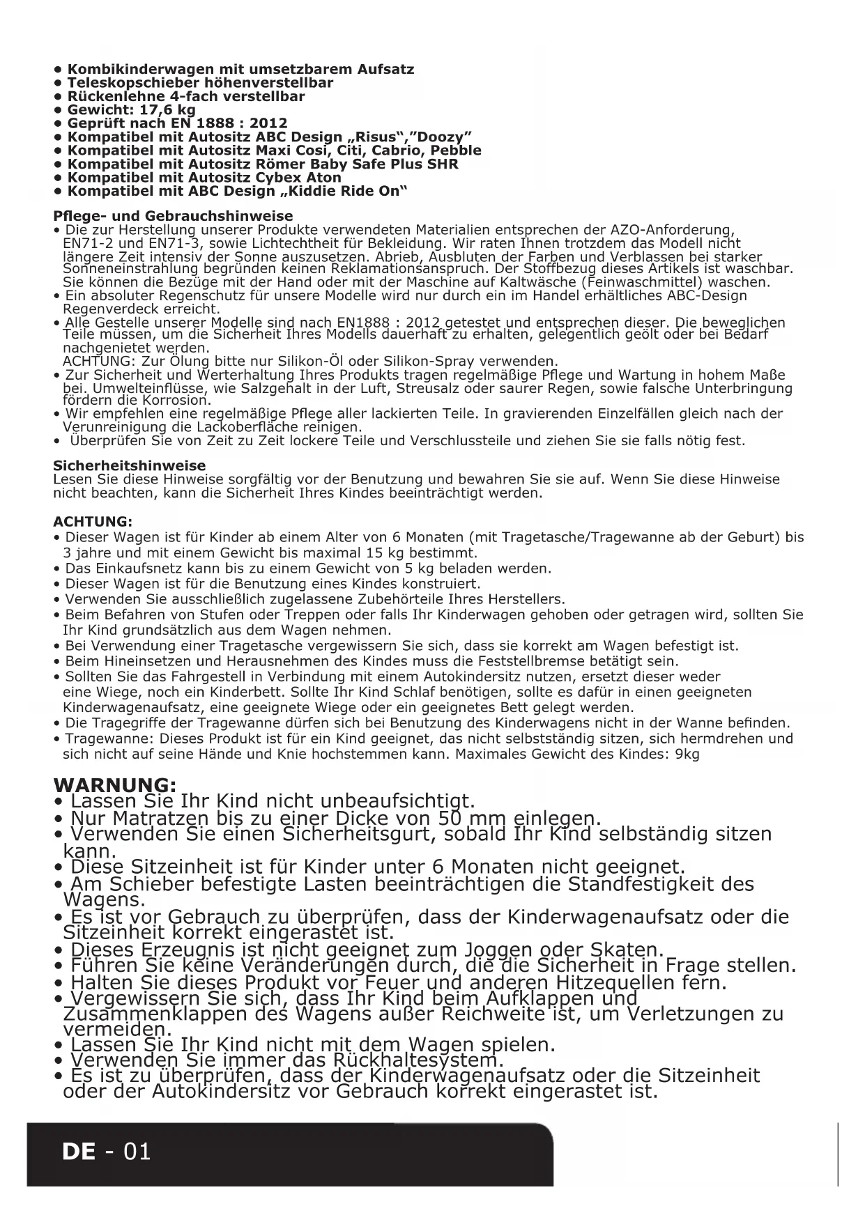 • Dieser Wagen ist für Kinder ab einem Alter von 6 Monaten (mit Tragetasche/Tragewanne ab der Geburt) bis