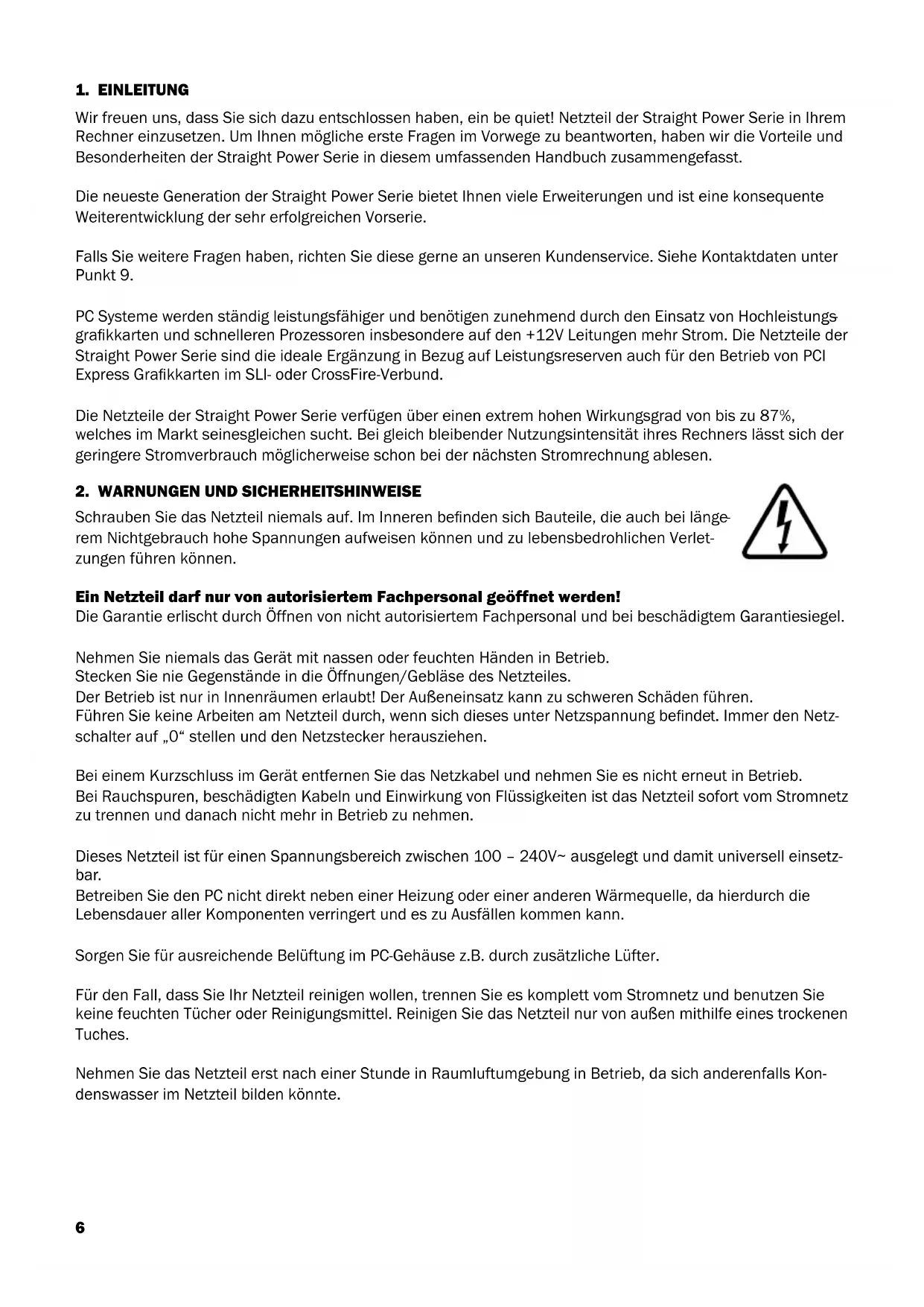 Wirfreuenuns,dassSiesichdazuentschlossenhaben,einbequiet!NetzteilderStraightPowerSerieinIhrem Rechner einzusetzen. Um Ihnen mögliche erste Fragen im Vorwege zu beantworten, haben wir die Vorteile und BesonderheitenderStraightPowerSerieindiesemumfassendenHandbuchzusammengefasst. DieneuesteGenerationderStraightPowerSeriebietetIhnenvieleErweiterungenundisteinekonsequente Weiterentwicklung der sehr erfolgreichen Vorserie. Falls Sie weitere Fragen haben, richten Sie diese gerne an unseren Kundenservice. Siehe Kontaktdaten unter Punkt9. PCSystemewerdenständigleistungsfähigerundbenötigenzunehmenddurchdenEinsatzvonHochleistungs