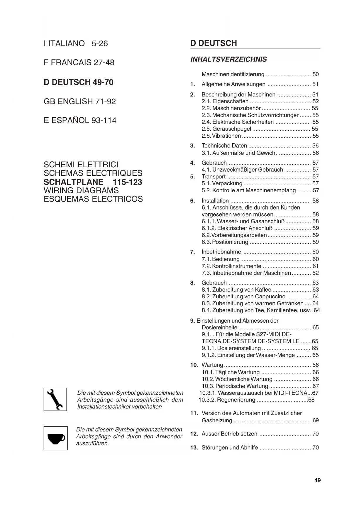 Die mit thisem Symbol gekennzeichneten Arbeitsgänge sind durch den Anwender auszufahren.