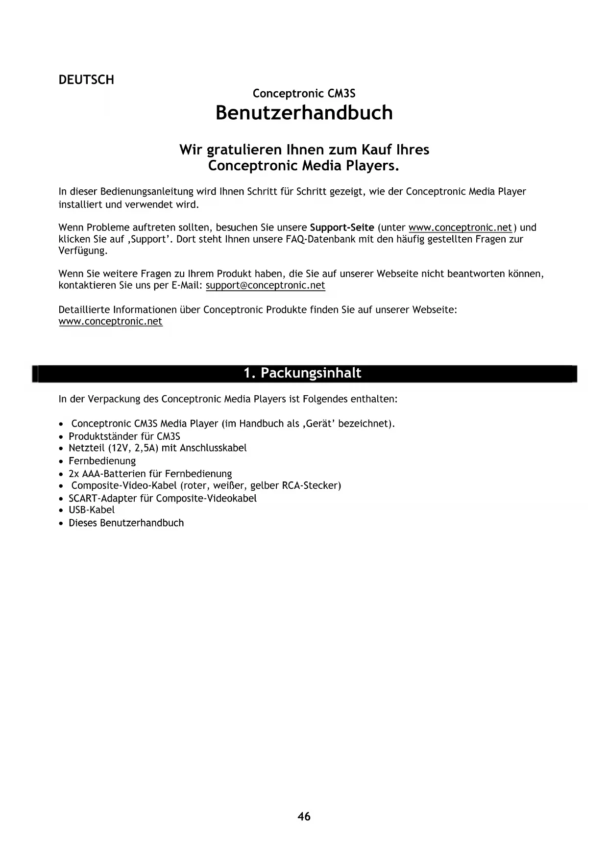 - Conceptronic CM3S Media Player (im Handbuch als „Gerät“ bezeichnet).
