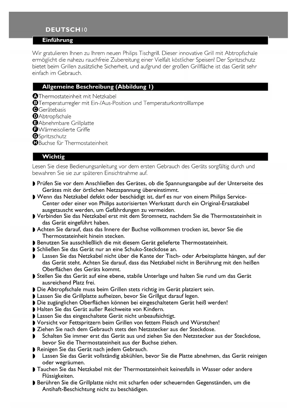B Beim ersten Gebrauch kann das Gerät etwas Rauch entwickeln. Das ist normal und kein Grund zur