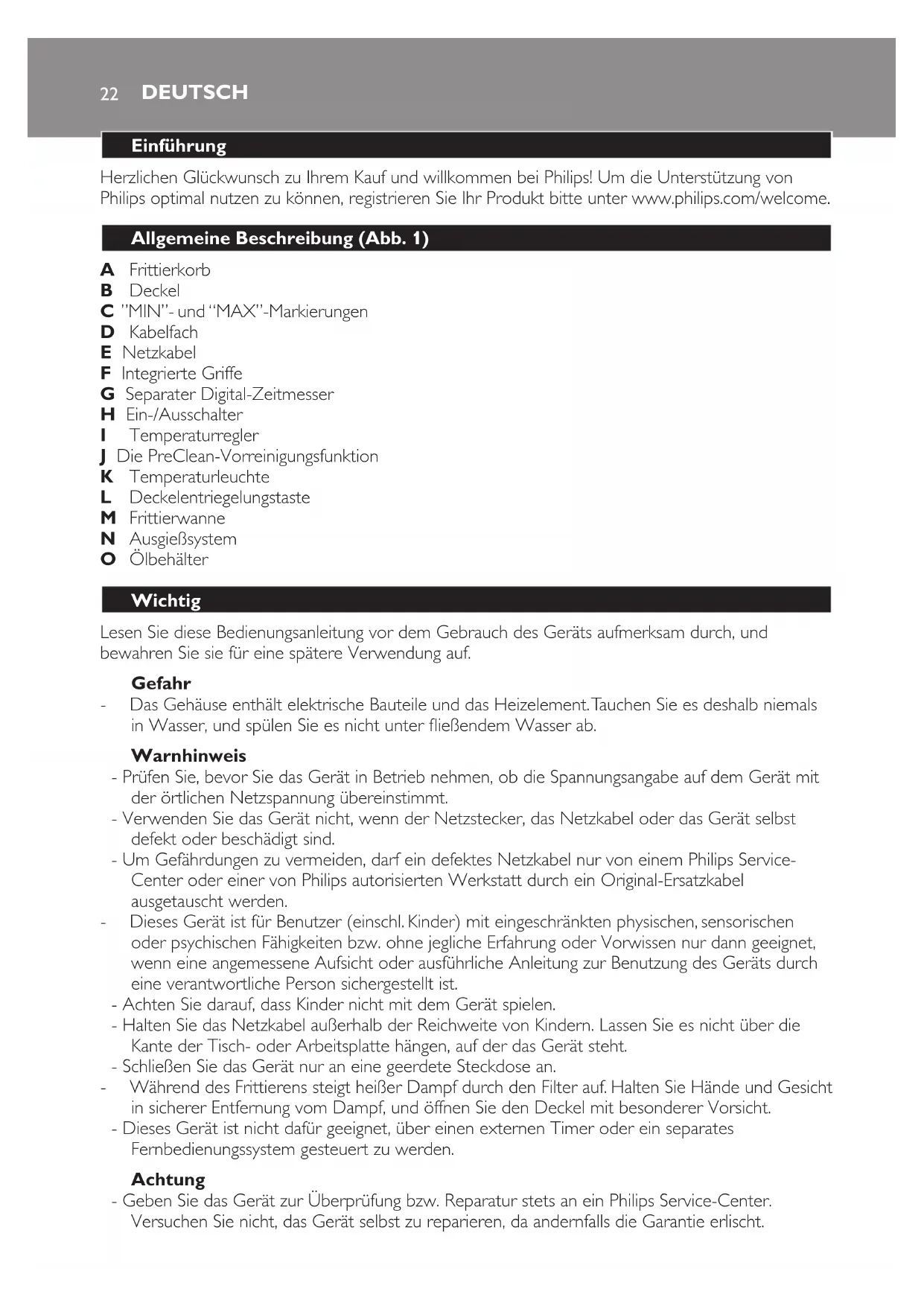 SchaltenSiedasGerätnichtein,bevorSiedieFrittierwannemitÖl/Fettgefüllthaben.
