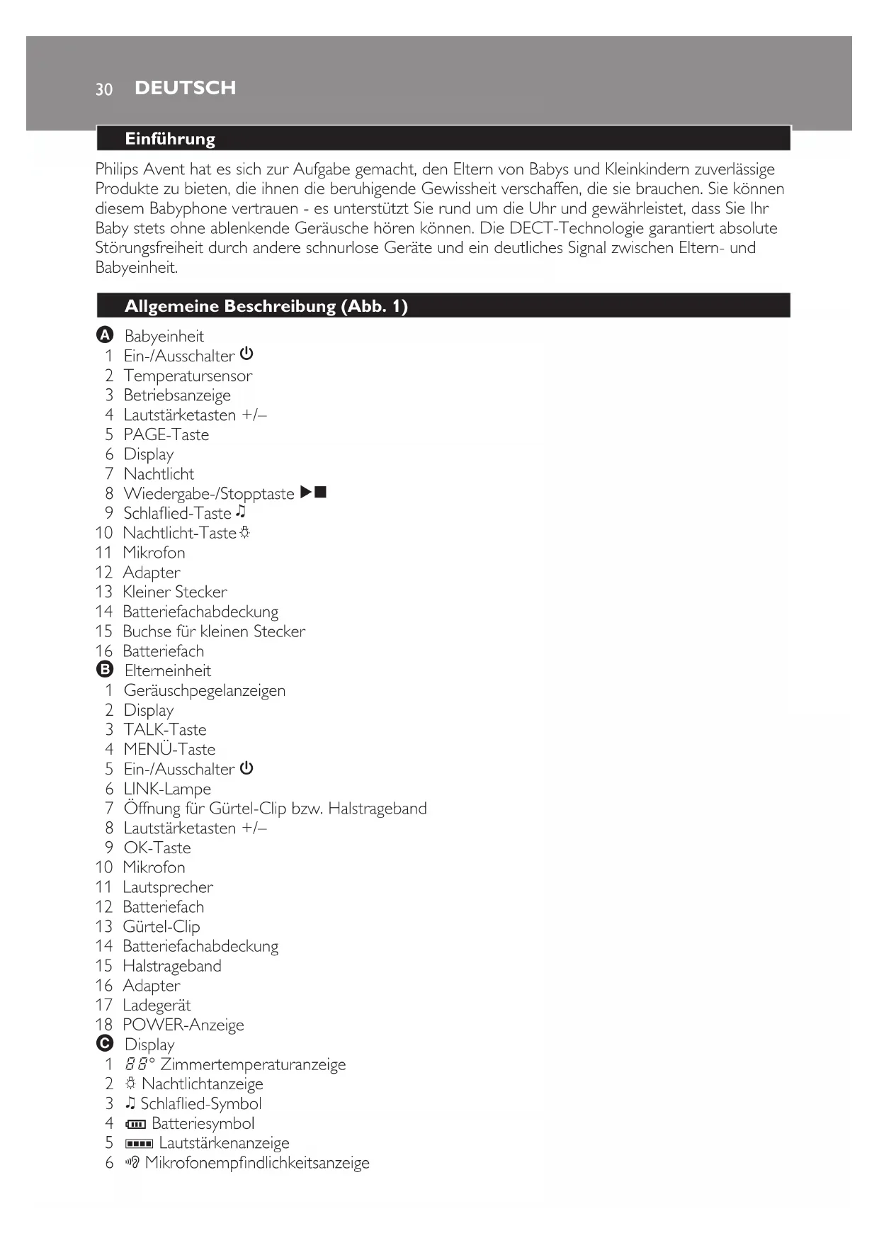 DEUTSCH32Hinweis: Die Betriebsdauer von 24 Stunden basiert auf der Annahme, dass die Babyeinheit 25% der Zeit