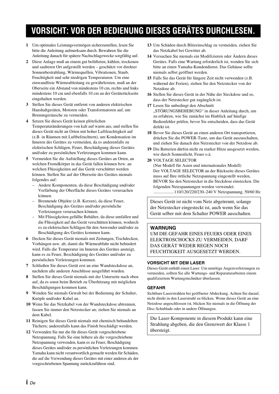 VORSICHT: VOR DER BEDIENUNG DIESES GERÄTES DURCHLESEN.