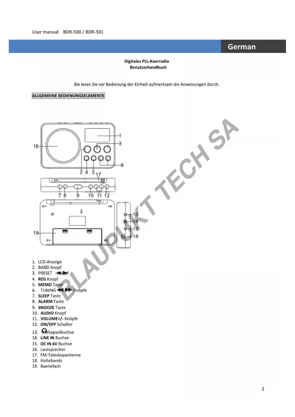 BLAUPUKT TECH SAUser manual BDR-500 / BDR-501