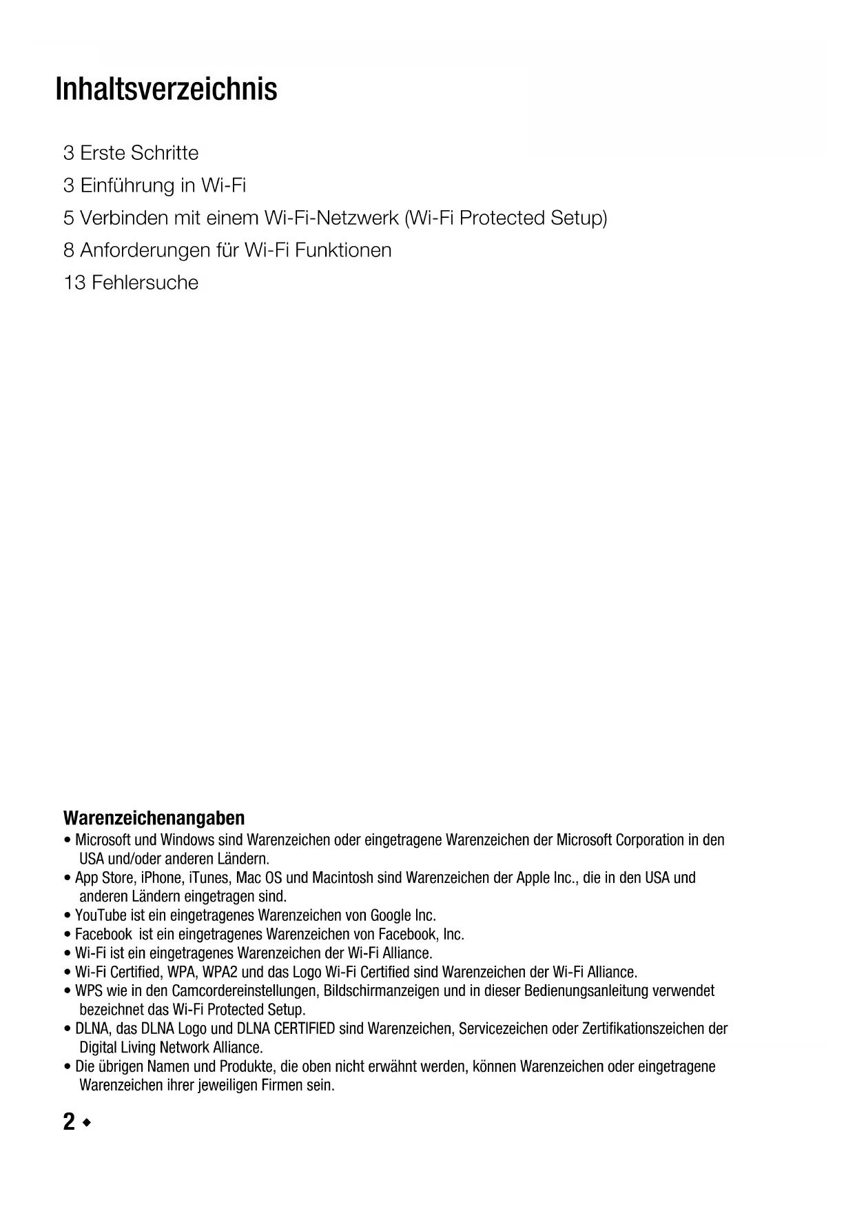 • WPS wie in den Camcordereinstellungen, Bildschirmanzeigen und in dieser Bedienungsanleitung verwendet