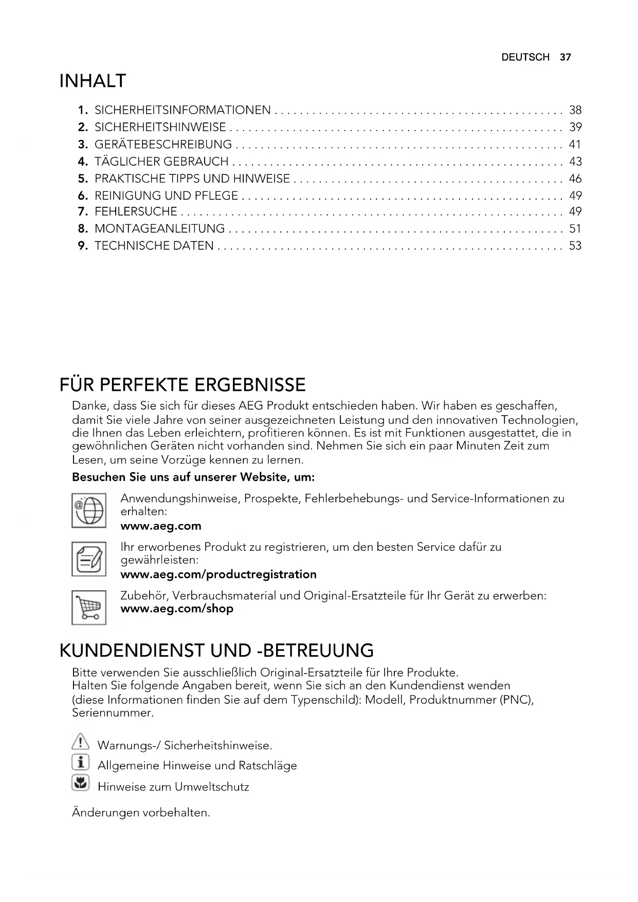 FÜR PERFEKTE ERGEBNISSE Danke, dass Sie sich für dieses AEG Produkt entschieden haben. Wir haben es geschaffen,