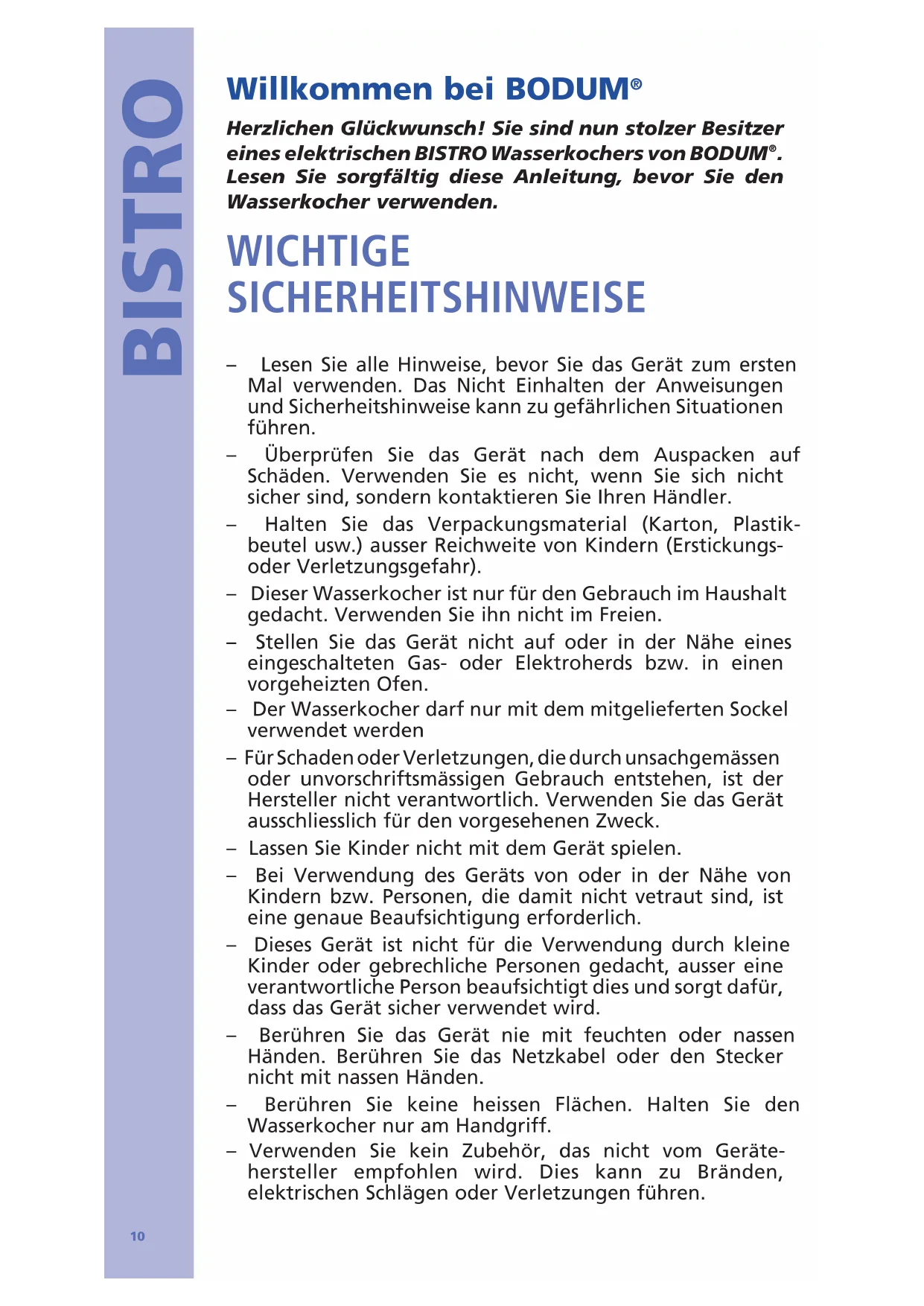 Herzlichen Glückwunsch! Sie sind nun stolzer Besitzer eines elektrischen BISTRO Wasserkochers von BODUM
