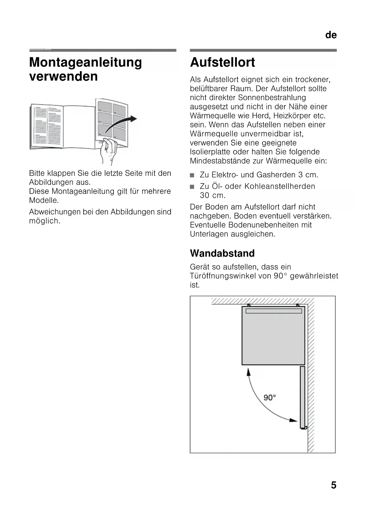 Türöffnungswinkel von 90° gewährleistet