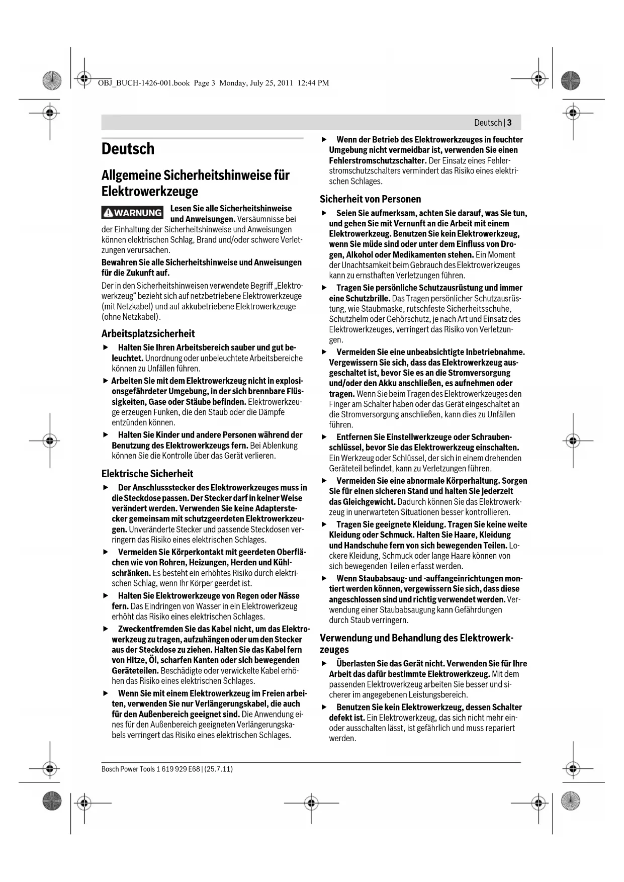 Der in den Sicherheitshinweisen verwendete Begriff „Elektrowerkezeug" bezieht sich auf netzbetriebene Elektrowerkzeuge (mit Netzkabel) und auf akkubetriebene Elektrowerkzeuge (ohne Netzkabel).
