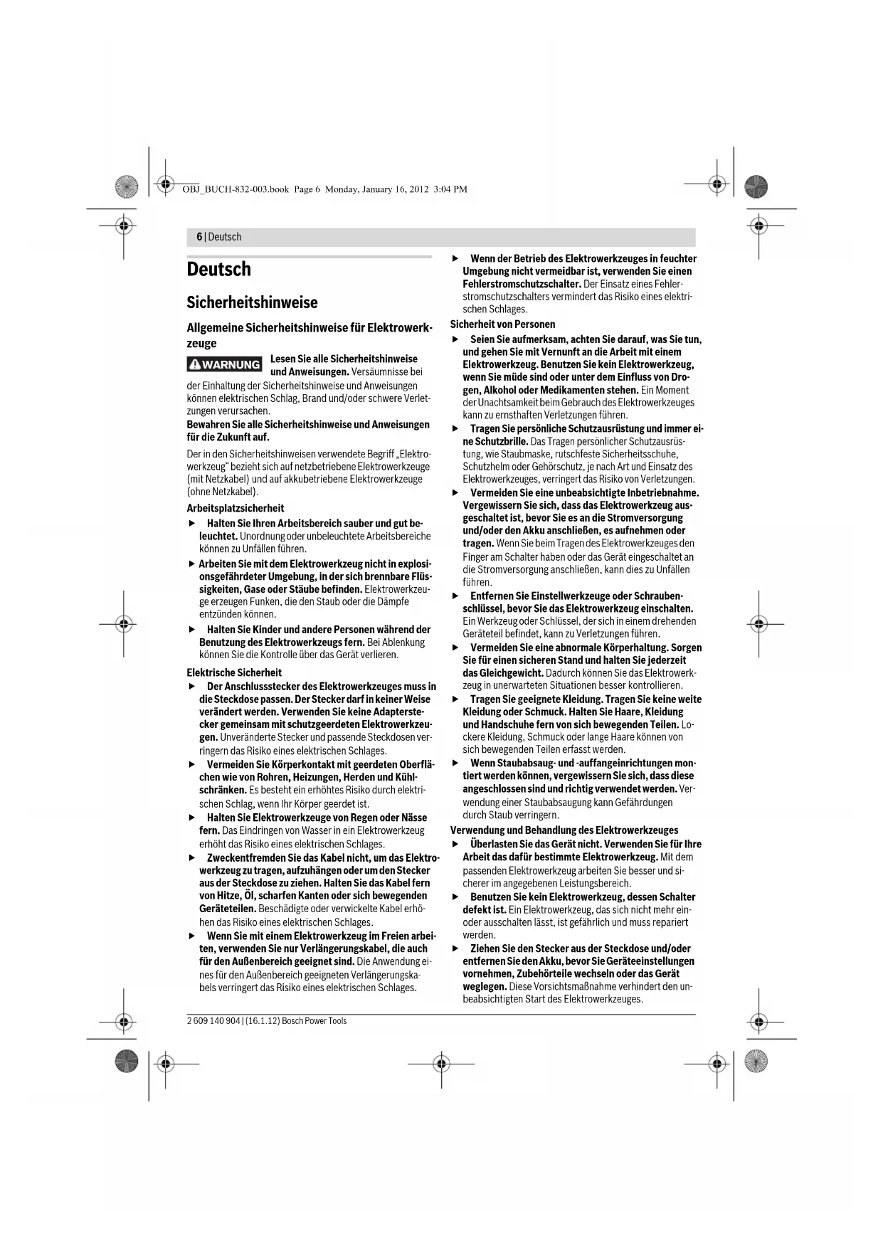 Verwendung und Behandlung des Elektrowerkzeuges