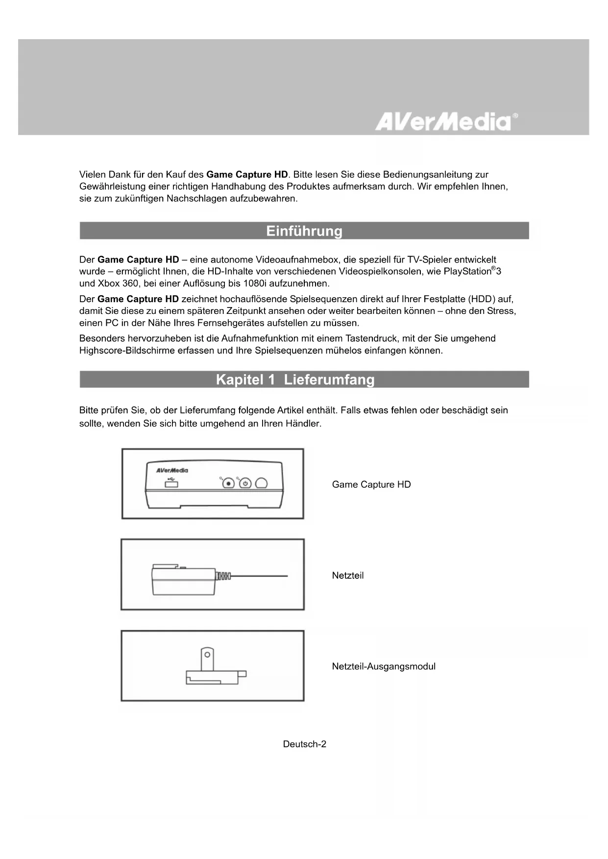BEDIENUNGSANLEITUNG Game Capture HD AVERMEDIA
