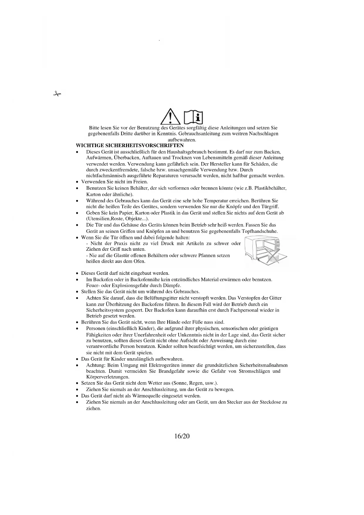 Dieses Gerät ist ausschließlich für den Haushaltsgebrauch bestimmt. Es darf nur zum Backen, Aufwärmen, Überbacken, Auftauen und Trocknen von Lebensmitteln gemäß dieser Anleitung verwendet werden. Verwendung kann gefährlich sein. Der Hersteller kann für Schäden, die durch zweckent fremdete, falsche bzw. unsachgemäß Verwendung bzw. Durch nichtfachmännisch ausgeführte Reparaturen verursicht werden, nicht haftbar gemacht werden.