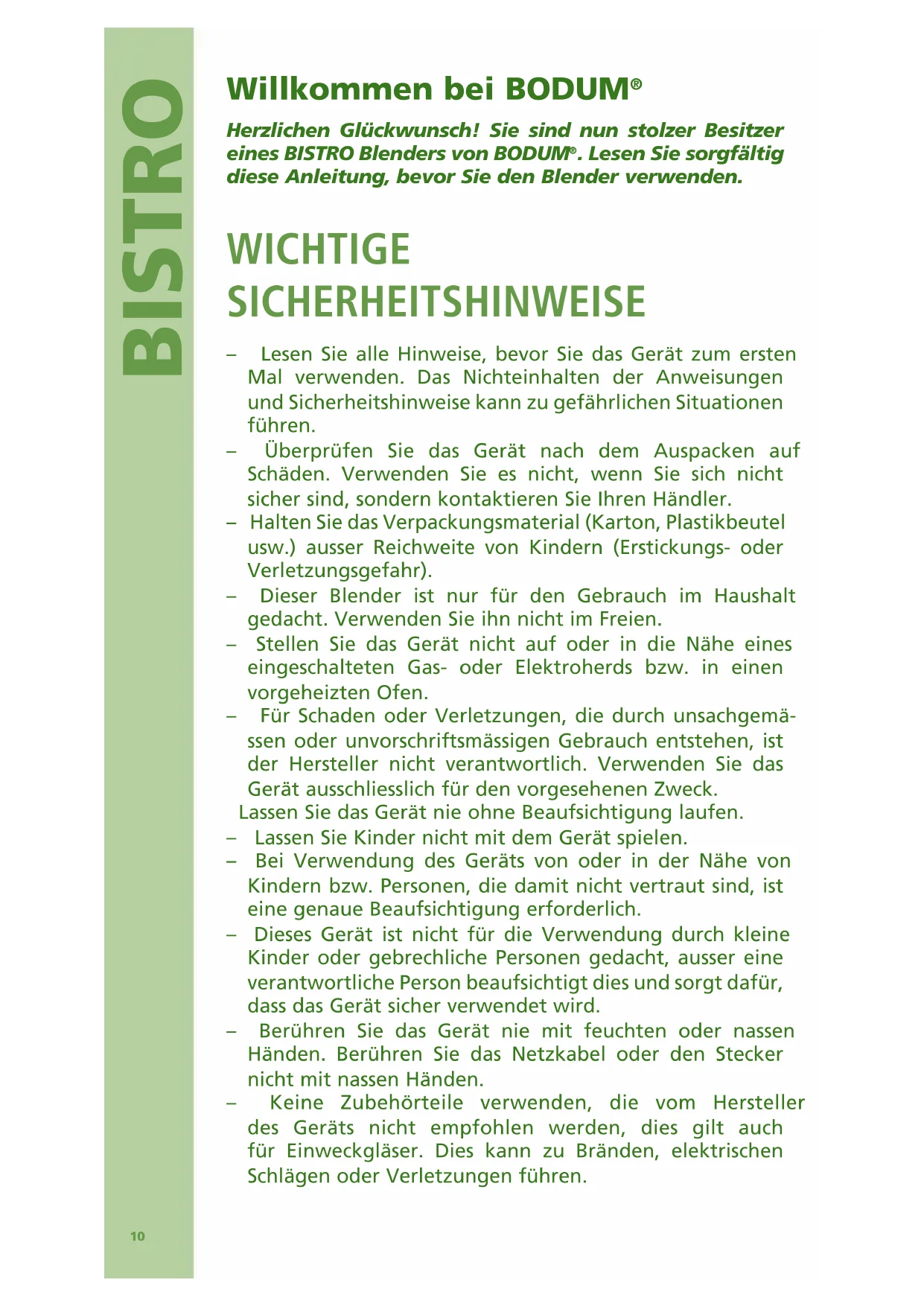 Herzlichen Glückwunsch! Sie sind nun stolzer Besitzer eines BISTRO Blenders von BODUM