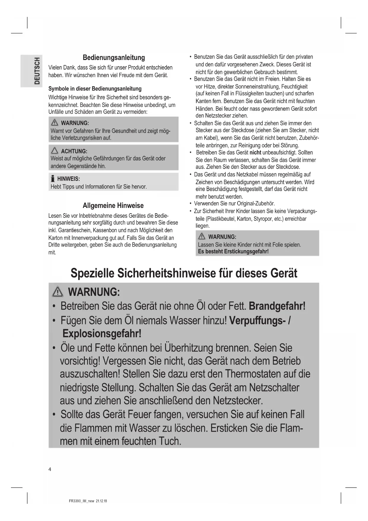 FRITTEUSE FR 3390DEUTSCH Inhalt