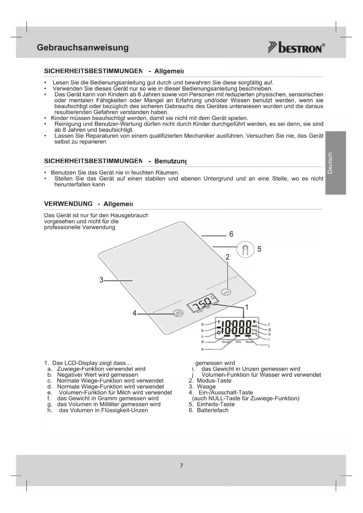 Gebrauchsanweisung Küchenwaage