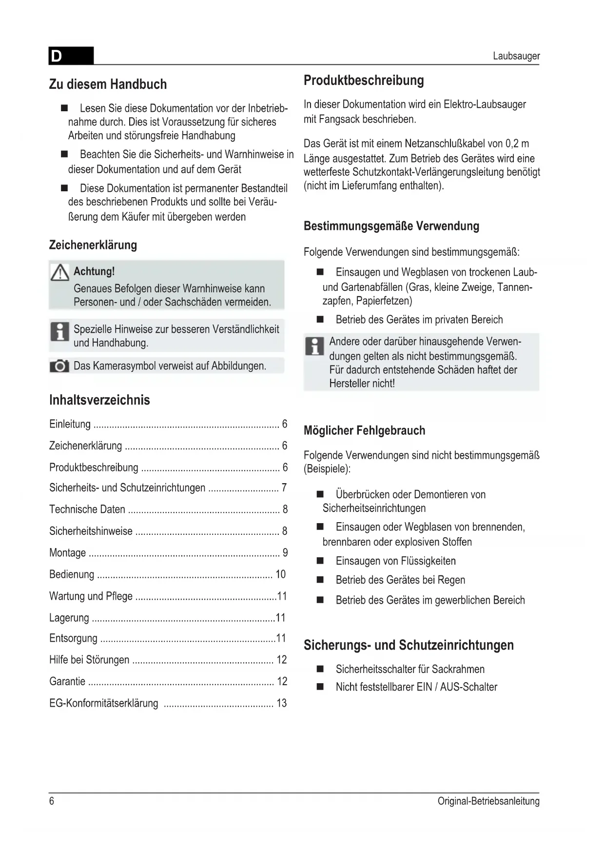 - Laubsauger Inhaltsverzeichnis Einleitung p. 6