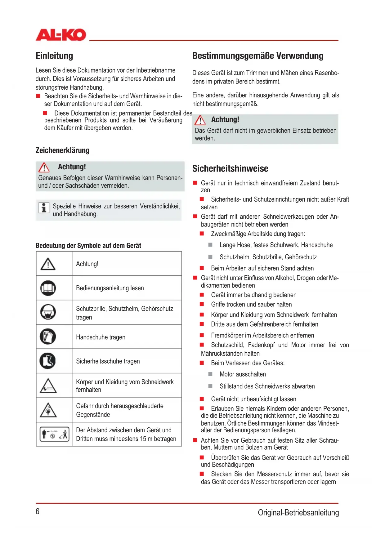 Laden Sie die Anleitung für Ihr Rasenmäher kostenlos im PDF-Format! Finden Sie Ihr Handbuch BC 4125 II Comfort - AL-KO und nehmen Sie Ihr elektronisches Gerät wieder in die Hand. Auf dieser Seite sind alle Dokumente veröffentlicht, die für die Verwendung Ihres Geräts notwendig sind. BC 4125 II Comfort von der Marke AL-KO.