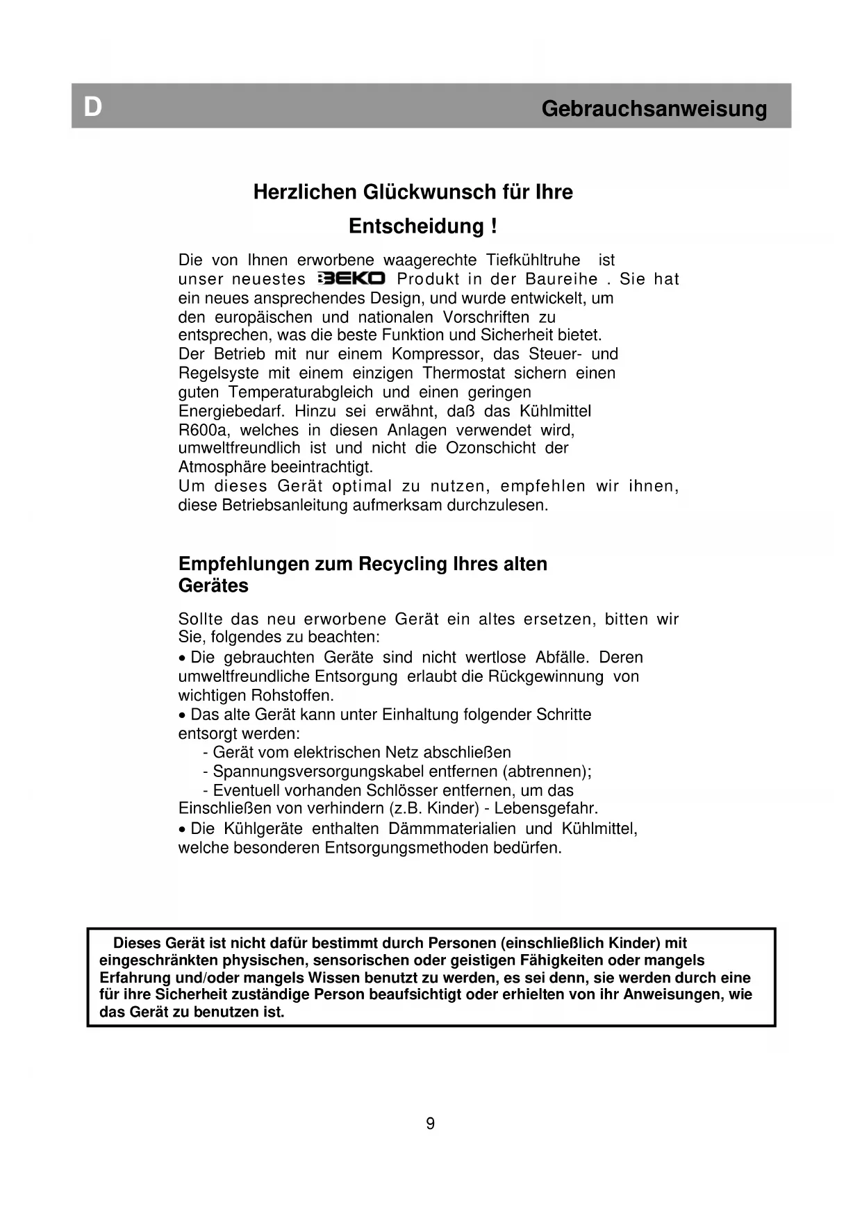 HS 218540 - Gefrierschrank BEKO - Kostenlose Bedienungsanleitung