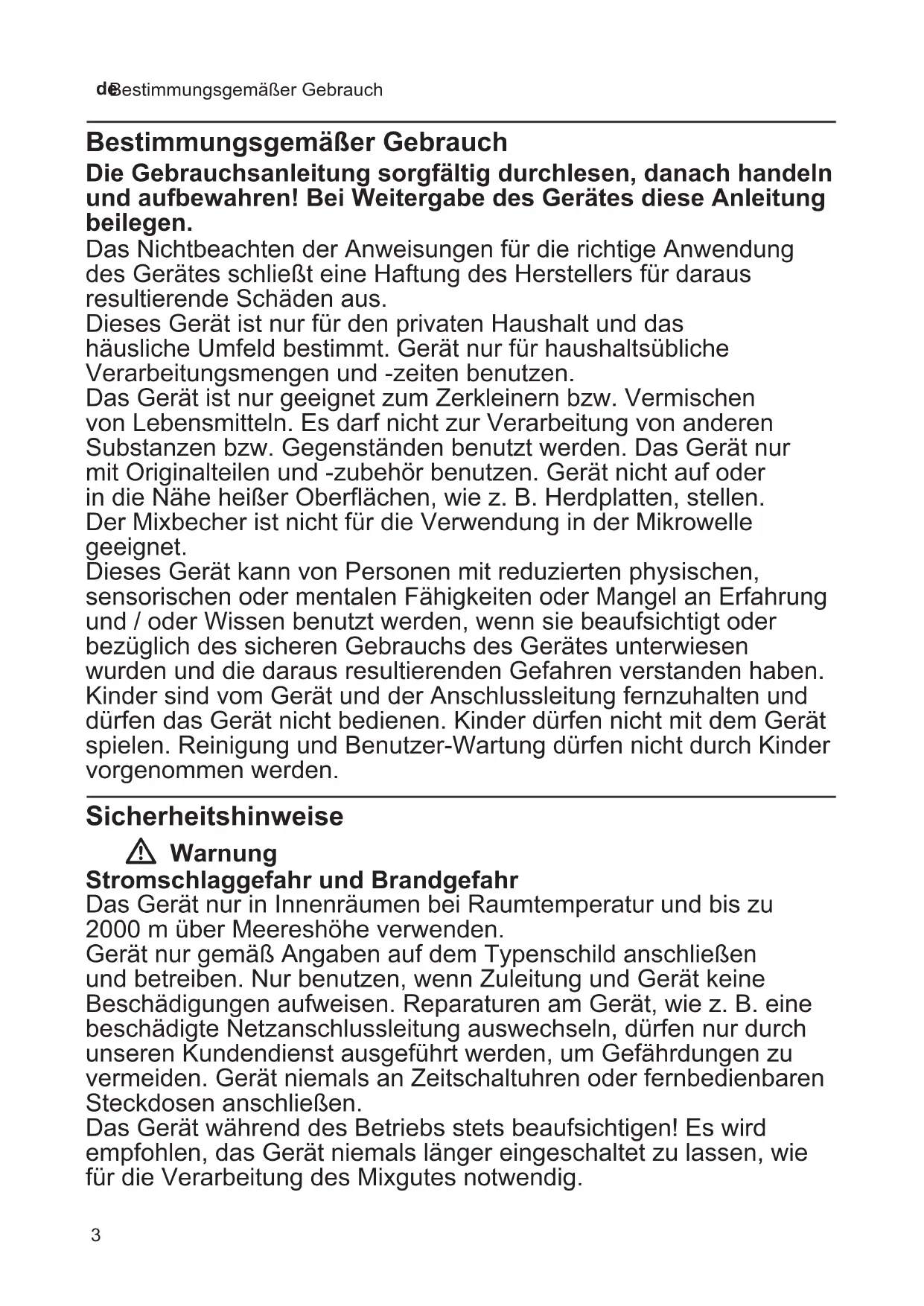 Das Gerät ist nur geeignet zum Zerkleinern bzw. Vermischen
