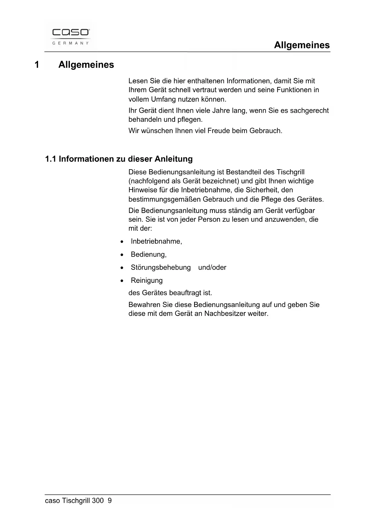 BEDIENUNGSANLEITUNG TG 300 CASO
