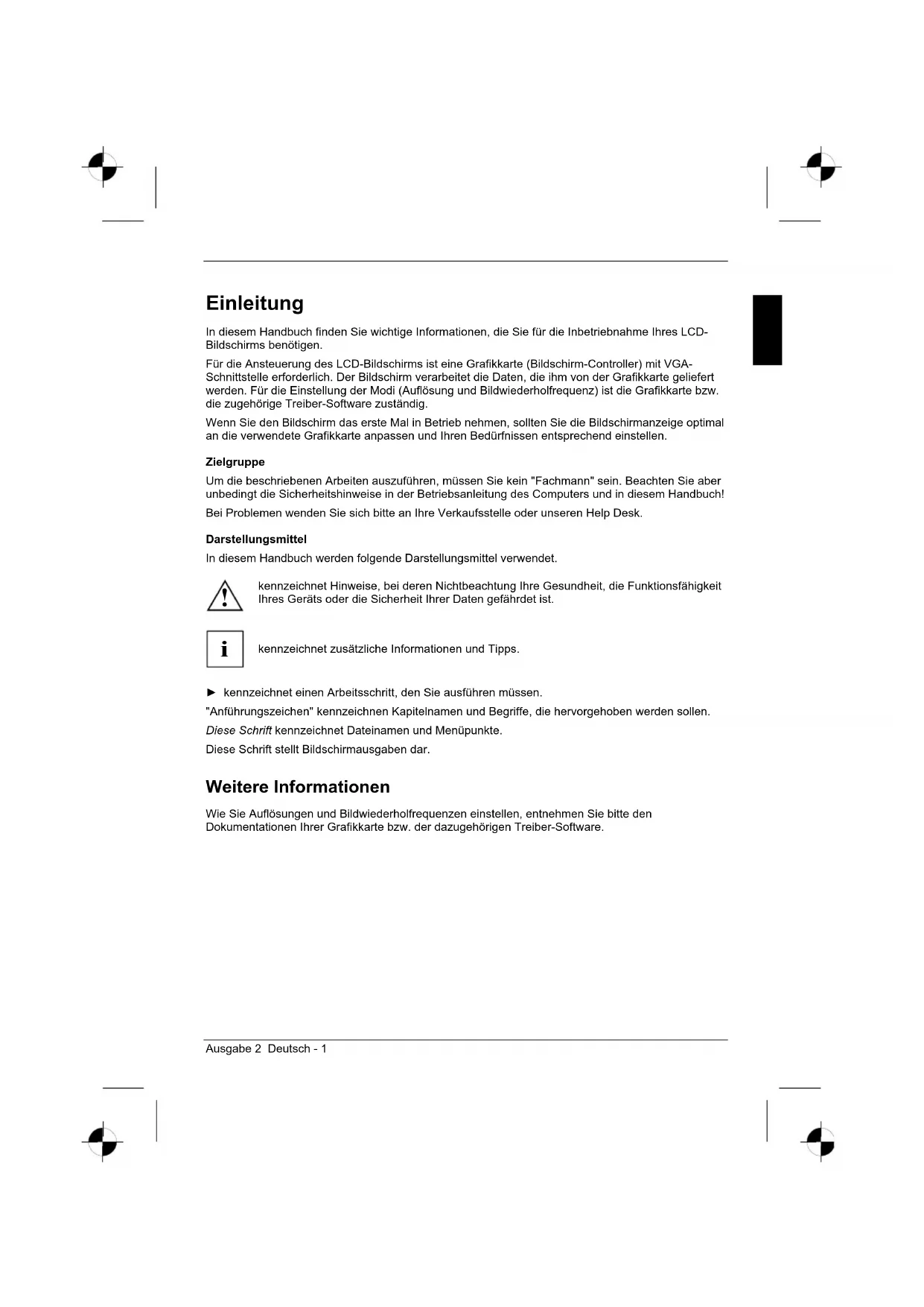 In diesem Handbuch finden Sie wichtige Informationen, die Sie für die Inbetriebnahme Ihres LCD-