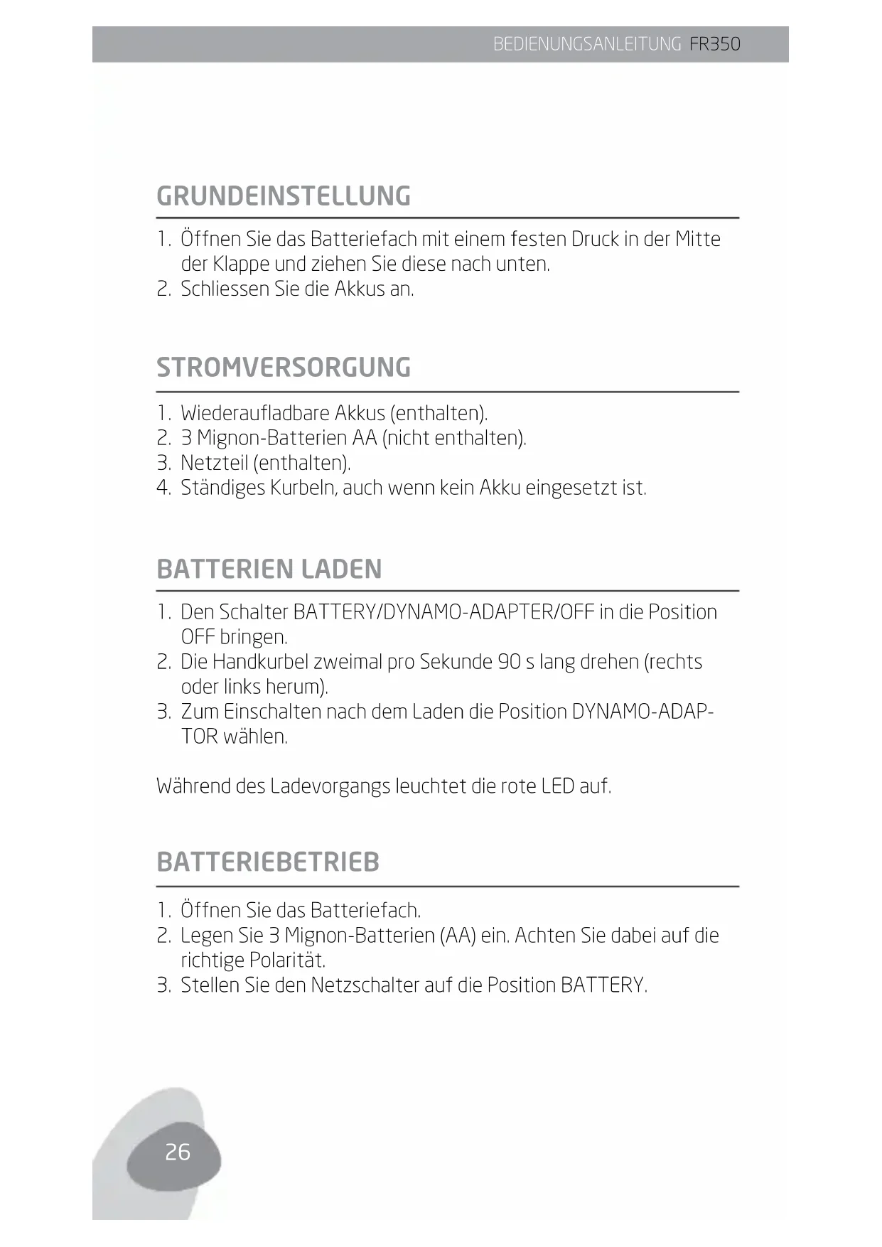 BEDIENUNGSANLEITUNG FR350 BEDIENUNGSANLEITUNG FR350WICHTIGE INFORMATIONEN zU BATTERIEN