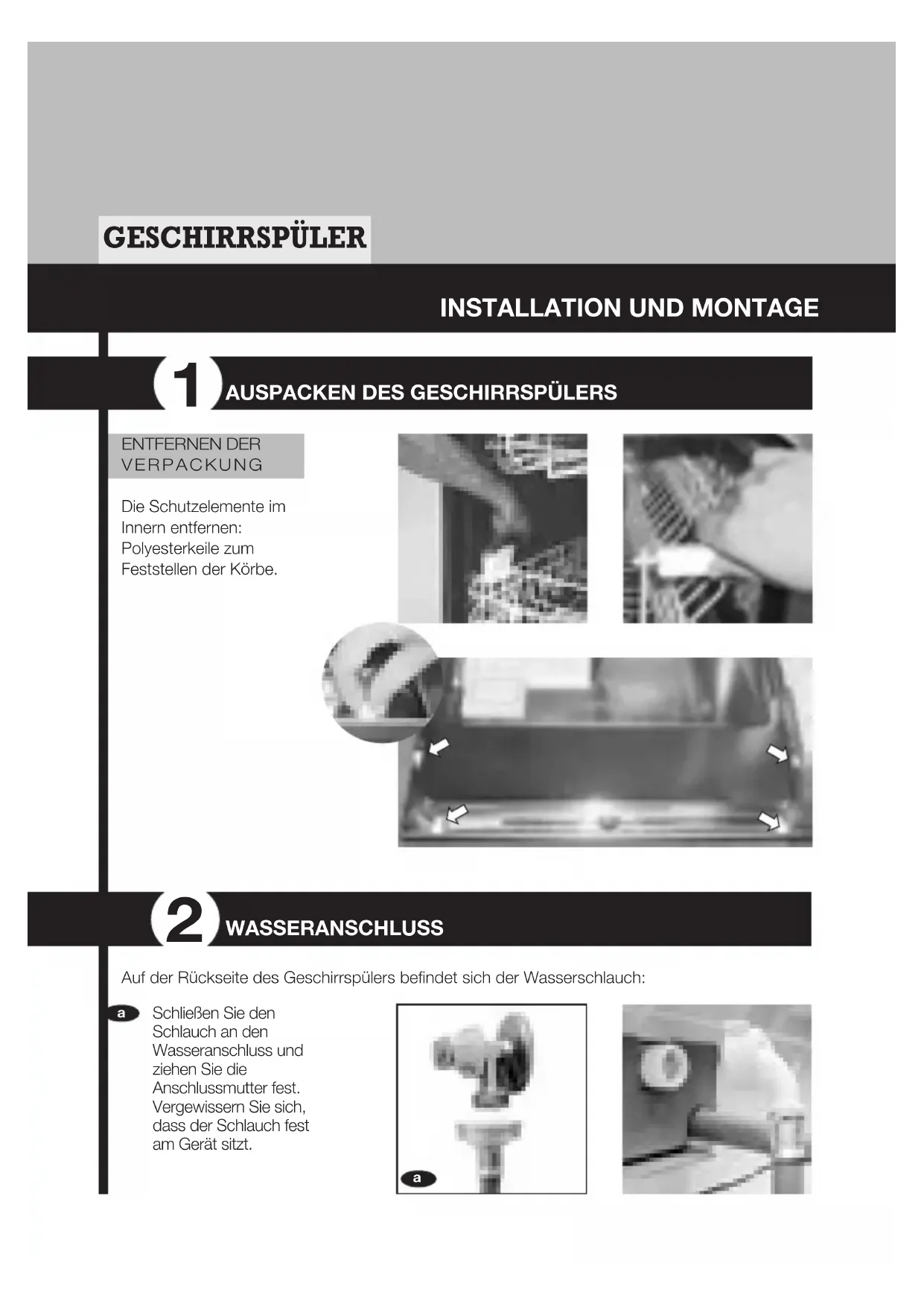 AUSPACKEN DES GESCHIRRSPÜLERS Die Schutzelemente im