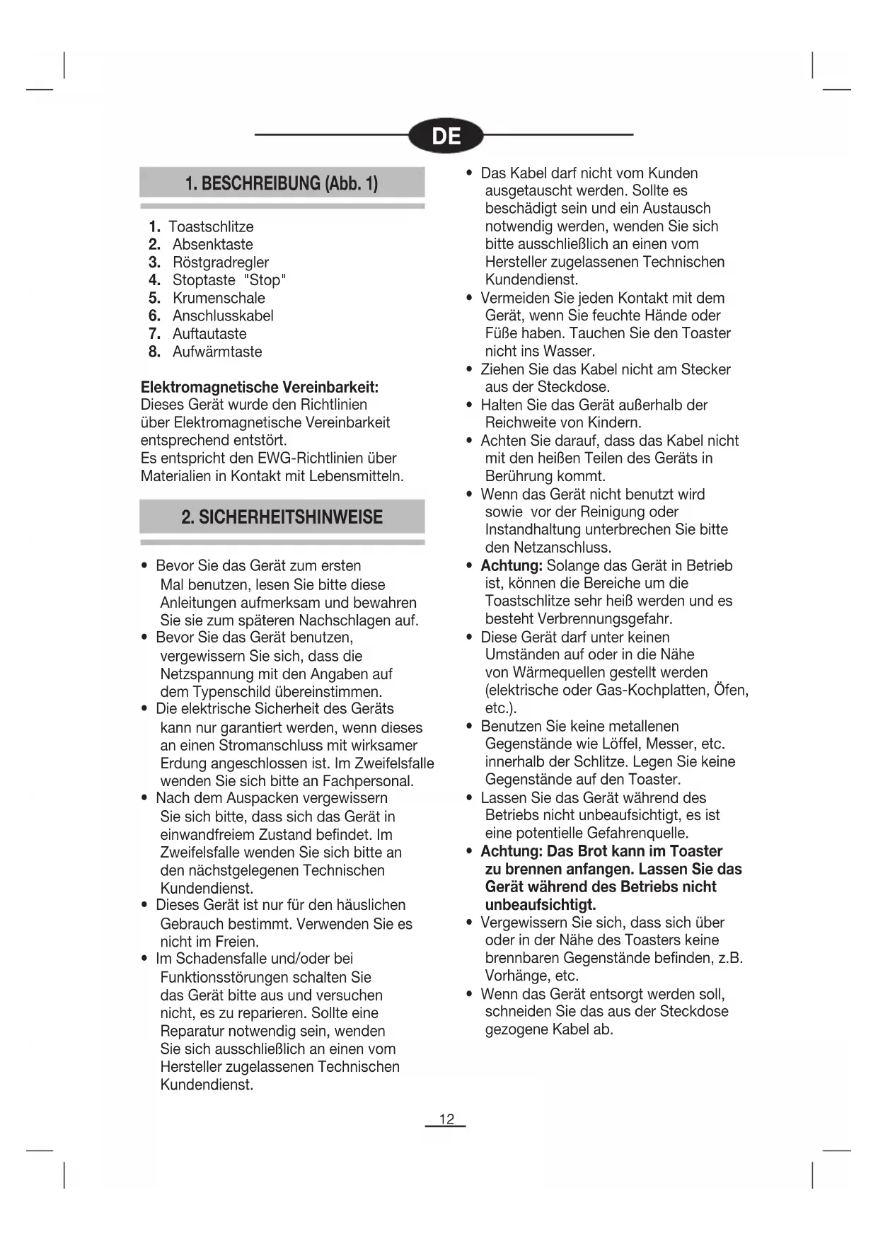 5. FUNKTIONSWEISE Den Toaster auf eine ebene und