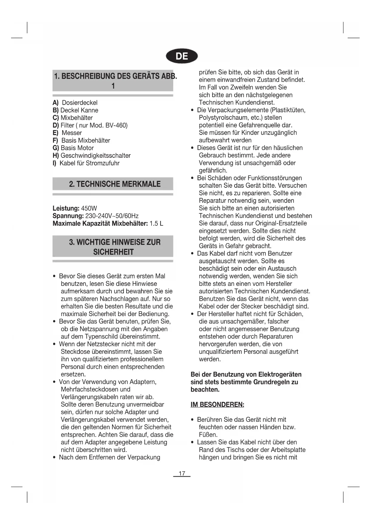 Leistung: 450W Spannung: 230-240V~50/60Hz