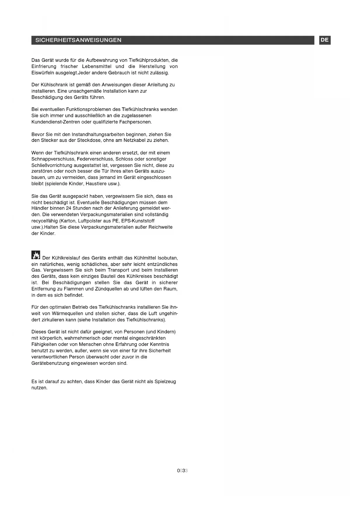 UUMMWWEELLTTSSCCHHUUTTZZ Der Kühlkreislauf und die Isolierstoffe des Geräts enthalten keine