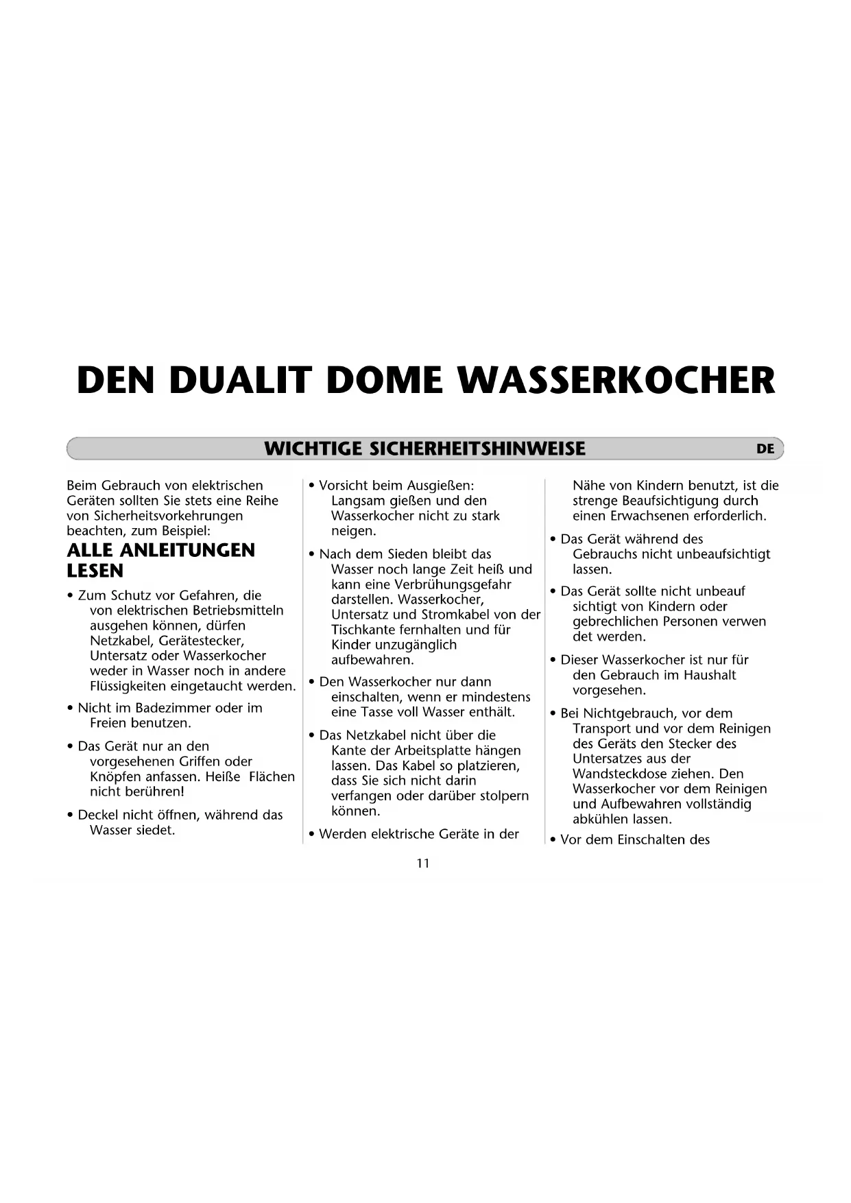 071008_ DDK6 EU DOME KETTLE IB.qxp 08/10/2008 16:35 Page 11Wasserkochers muss der Deckel vollständig geschlossen sein, da sich das Gerät andernfalls möglicherweise nicht ordnungsgemäß ausschaltet.