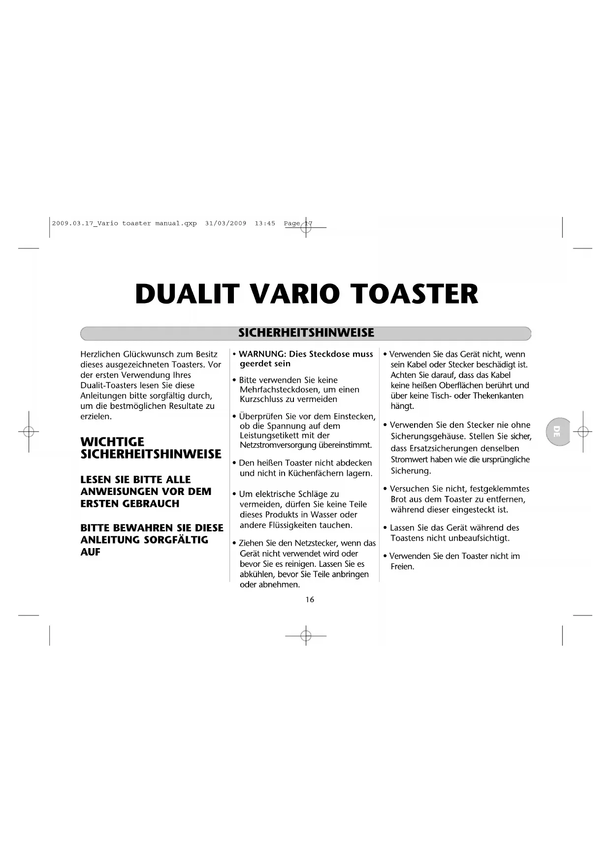 42185 - Toaster DUALIT - Kostenlose Bedienungsanleitung