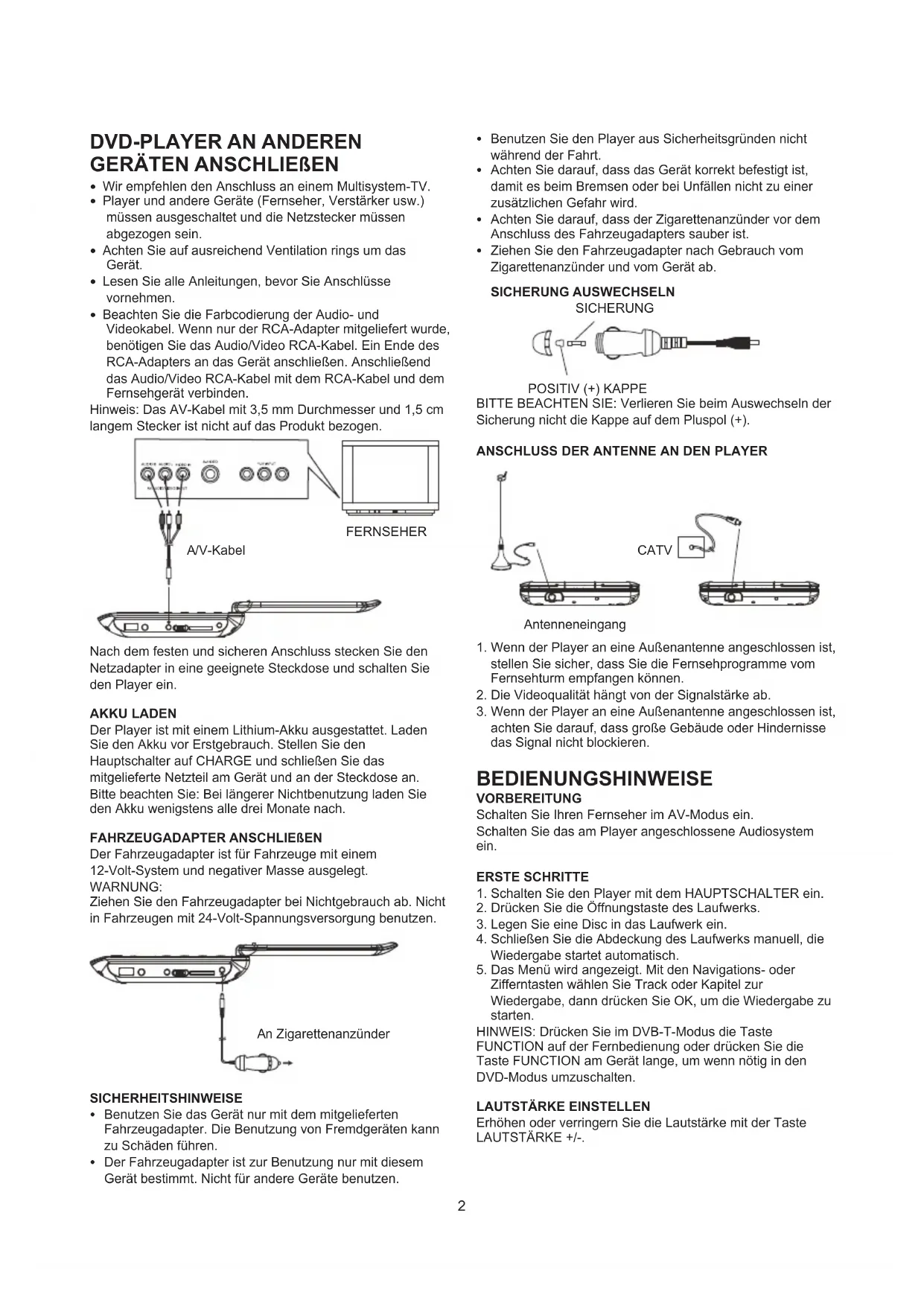 - Benutzen Sie das Gerät nur mit dem mitgelieferten Fahrzeugadapter. Die Benutzung von Fremdgeräten kann zu Schaden führen.