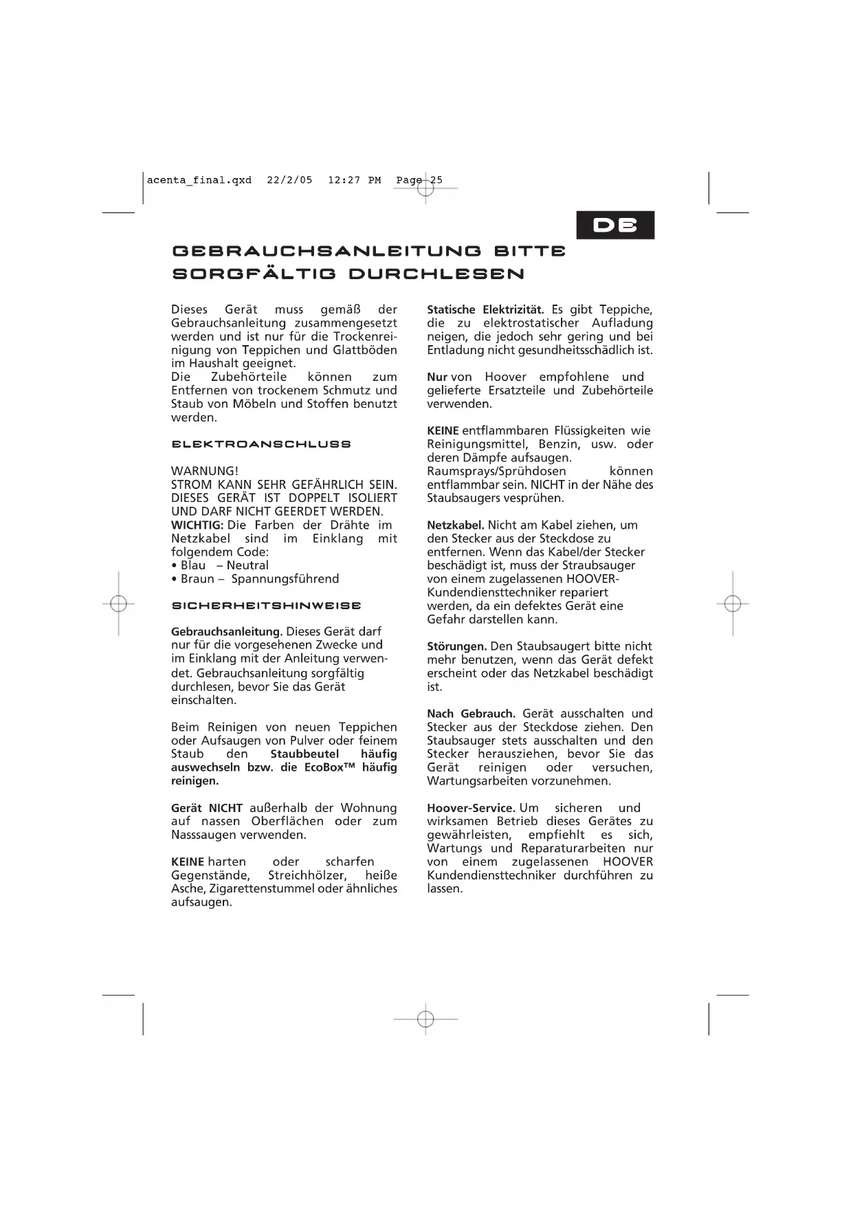acenta_final.qxd 22/2/05 12:27 PM Page 23acenta_final.qxd 22/2/05 12:27 PM Page 24DE Dieses Gerät muss gemäß der