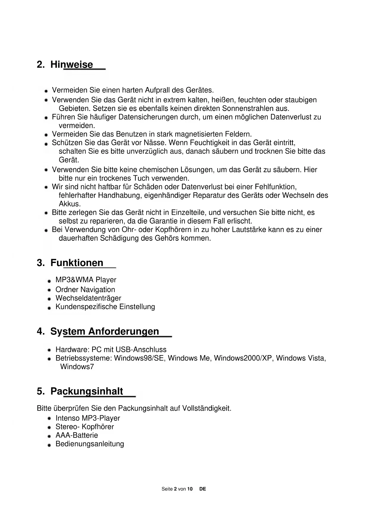 Finden Sie kostenlos die Bedienungsanleitung des Geräts Musik Walker INTENSO als PDF.