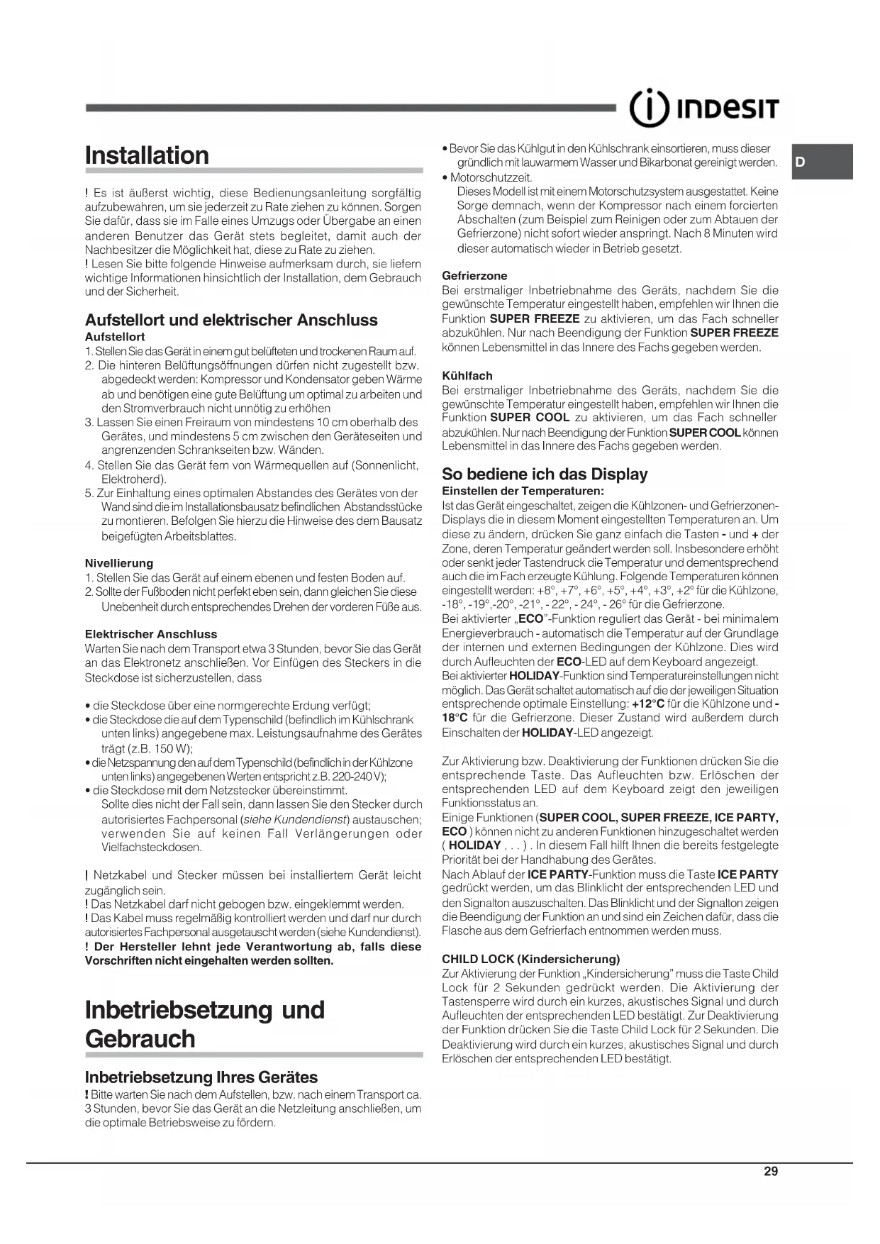 Laden Sie die Anleitung für Ihr Kühlschrank kostenlos im PDF-Format! Finden Sie Ihr Handbuch BIAA 34 F X H D - INDESIT und nehmen Sie Ihr elektronisches Gerät wieder in die Hand. Auf dieser Seite sind alle Dokumente veröffentlicht, die für die Verwendung Ihres Geräts notwendig sind. BIAA 34 F X H D von der Marke INDESIT.