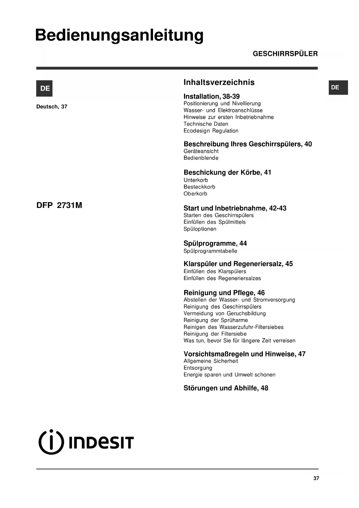 Laden Sie die Anleitung für Ihr Geschirrspüler kostenlos im PDF-Format! Finden Sie Ihr Handbuch DFP 2731M NX EU - INDESIT und nehmen Sie Ihr elektronisches Gerät wieder in die Hand. Auf dieser Seite sind alle Dokumente veröffentlicht, die für die Verwendung Ihres Geräts notwendig sind. DFP 2731M NX EU von der Marke INDESIT.