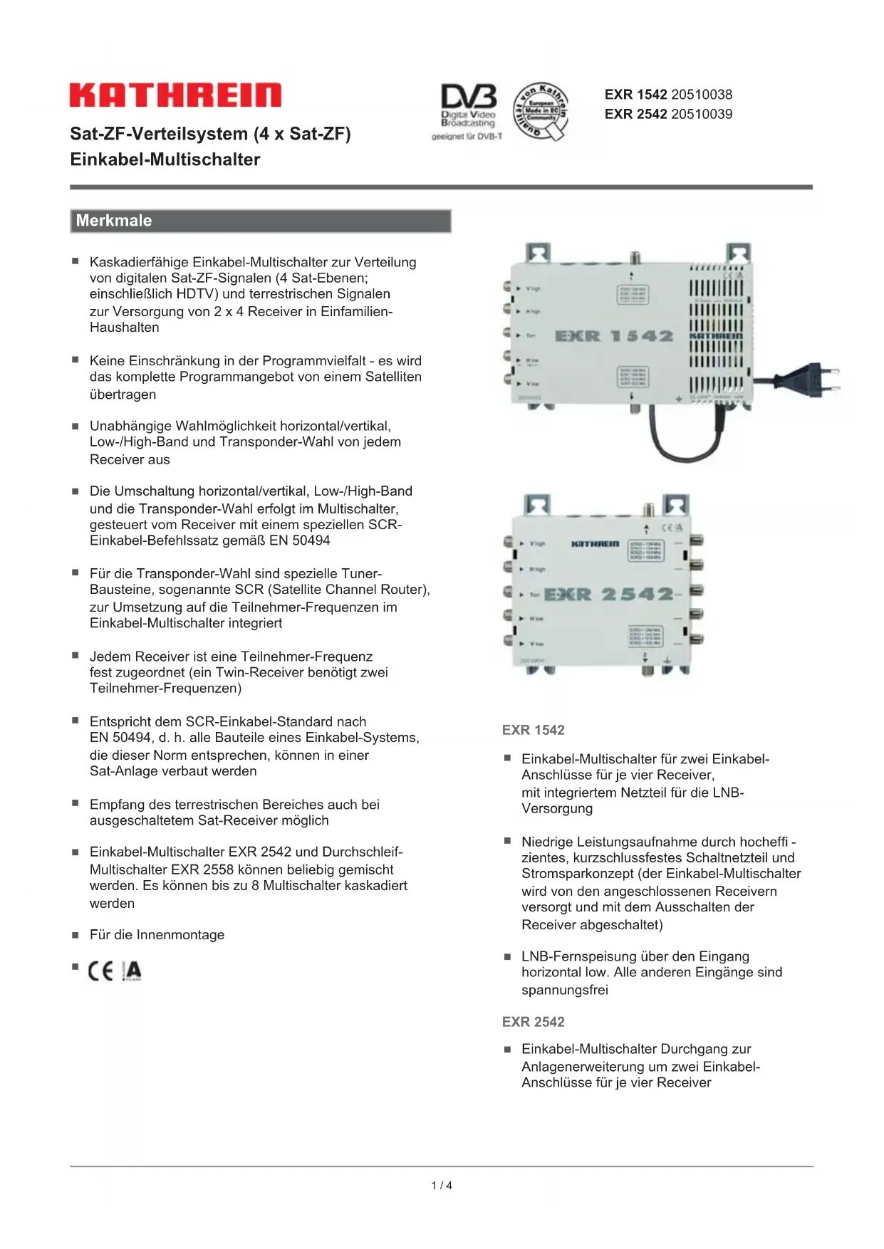 Finden Sie kostenlos die Bedienungsanleitung des Geräts EXR 2542 KATHREIN als PDF.