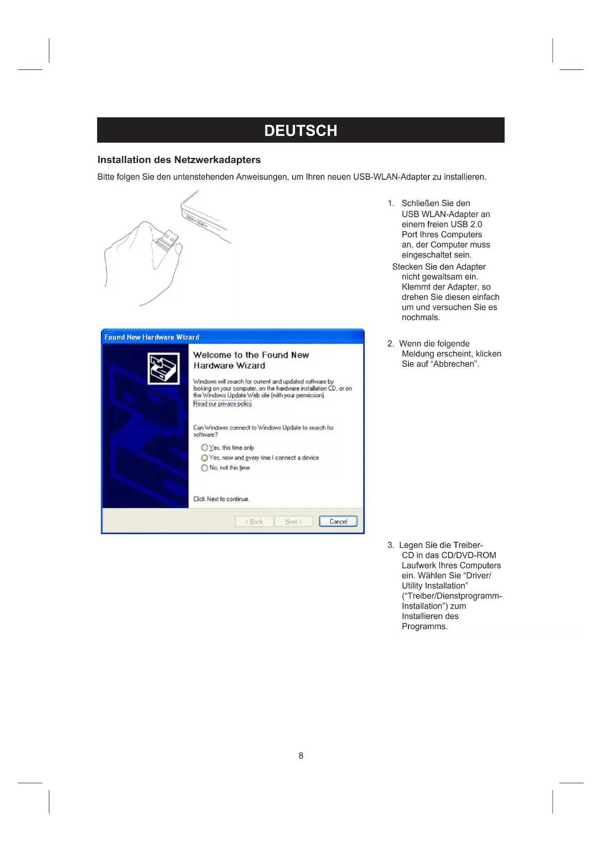 Bitte folgen Sie den unterstehenden Anweisungen, um ihren neuen USB-WLAN-Adapter zu stallieren.