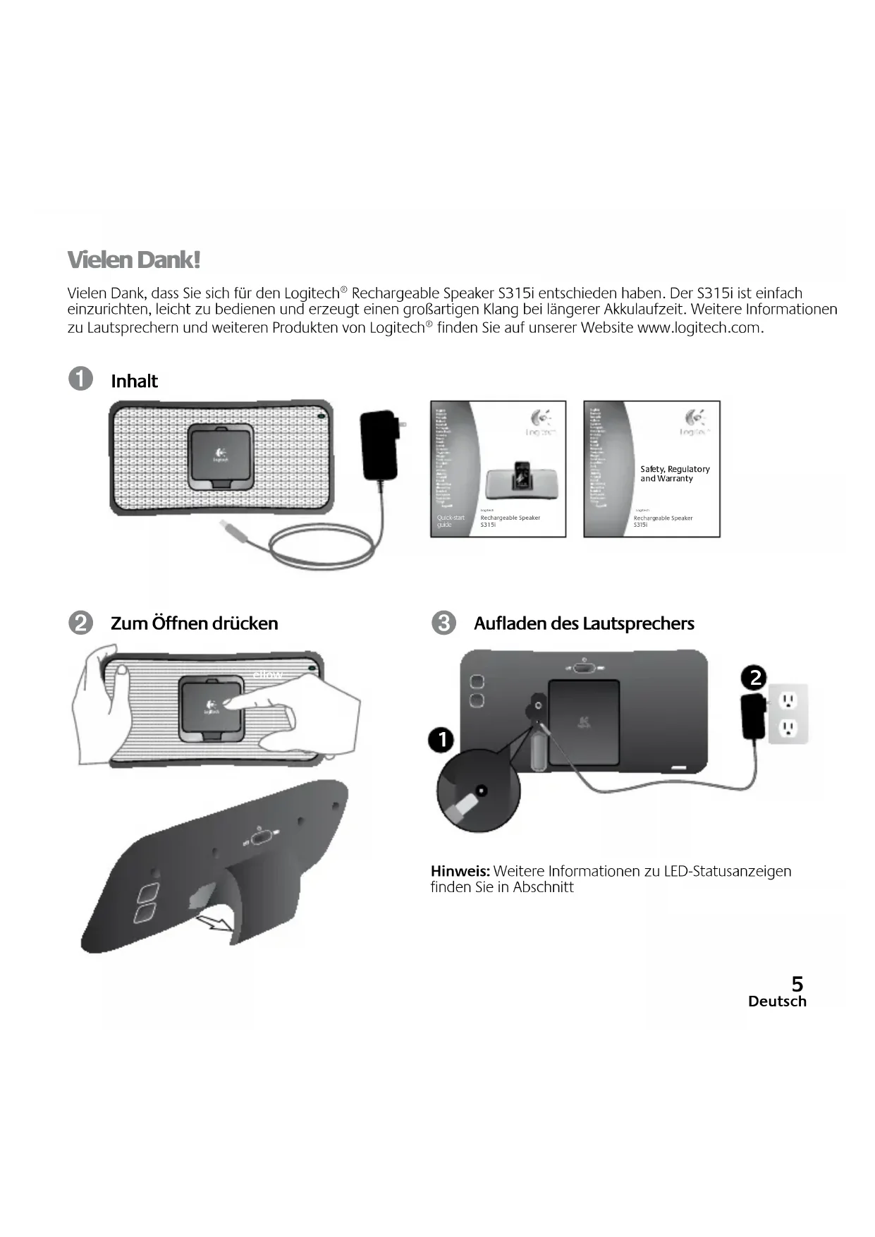 Vielen Dank, dass Sie sich für den Logitech® Rechargeable Speaker S315i entschieden haben. Der S315i ist einfach