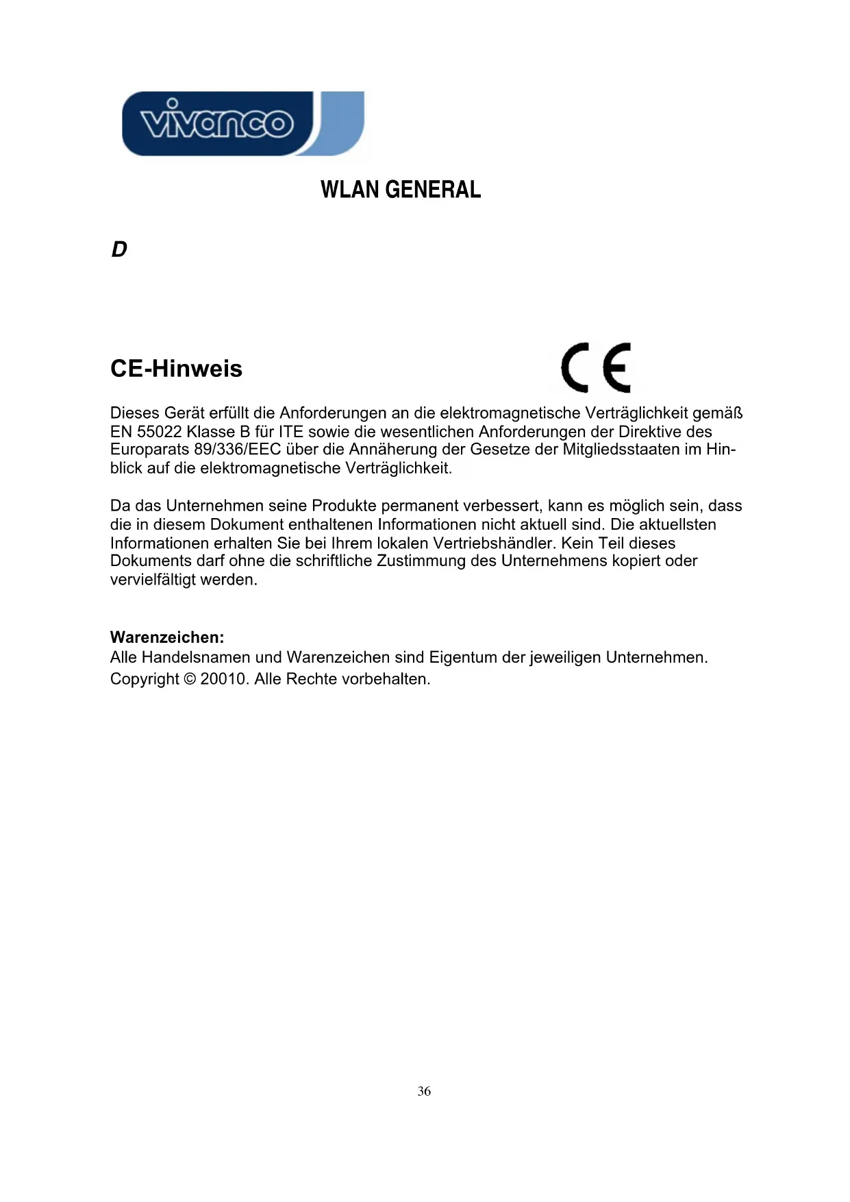 Warenzeichen: Alle Handelsnamen und Warenzeichen sind Eigentum der jeweiligen Unternehmen. Copyright © 20010. Alle Rechte vorbehalten.WLAN GENERAL