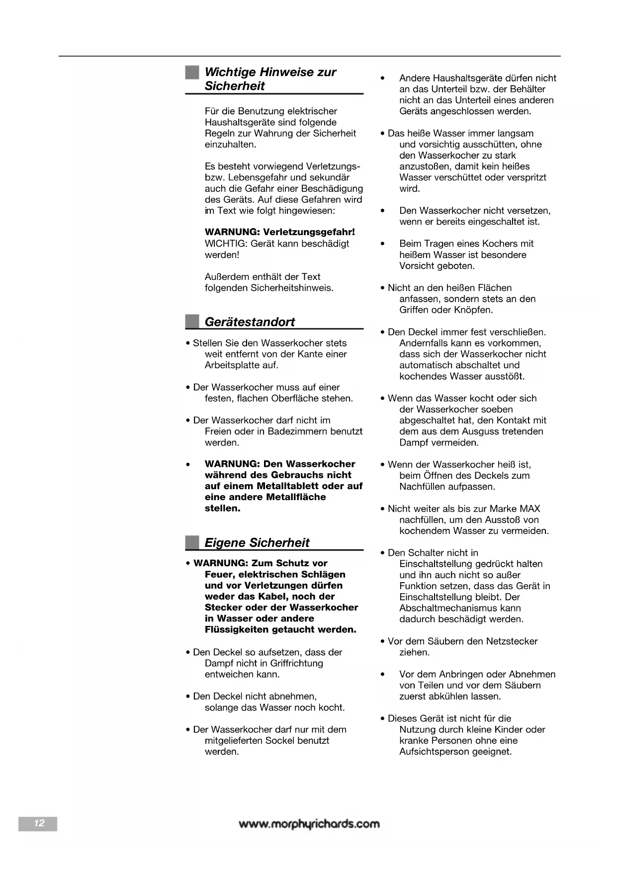 43687 - Wasserkocher MORPHY RICHARDS - Kostenlose Bedienungsanleitung