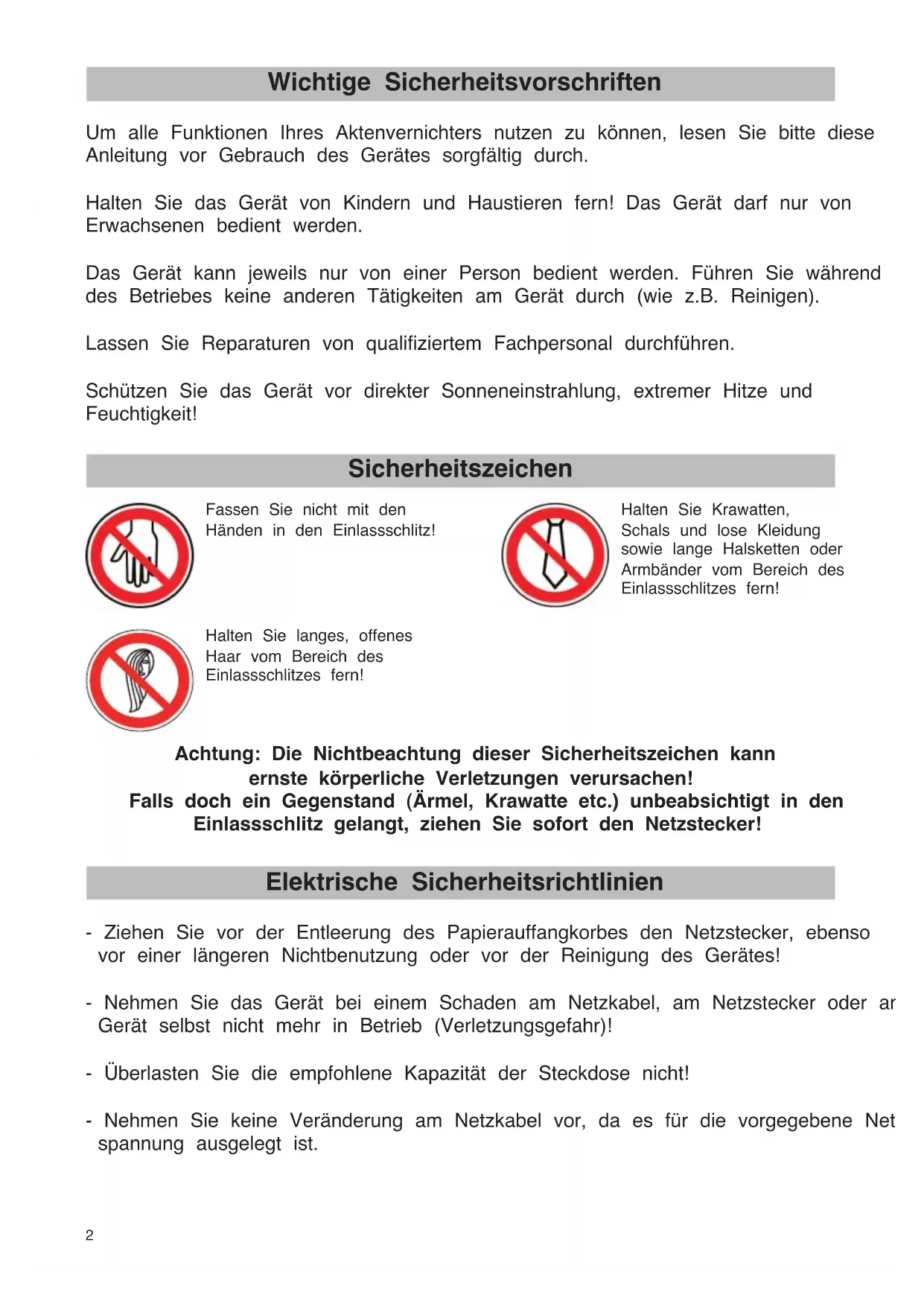 Vernichten Sie keine Endlosformulare mit diesem Gerät! Entfernen Sie alle Büro- und