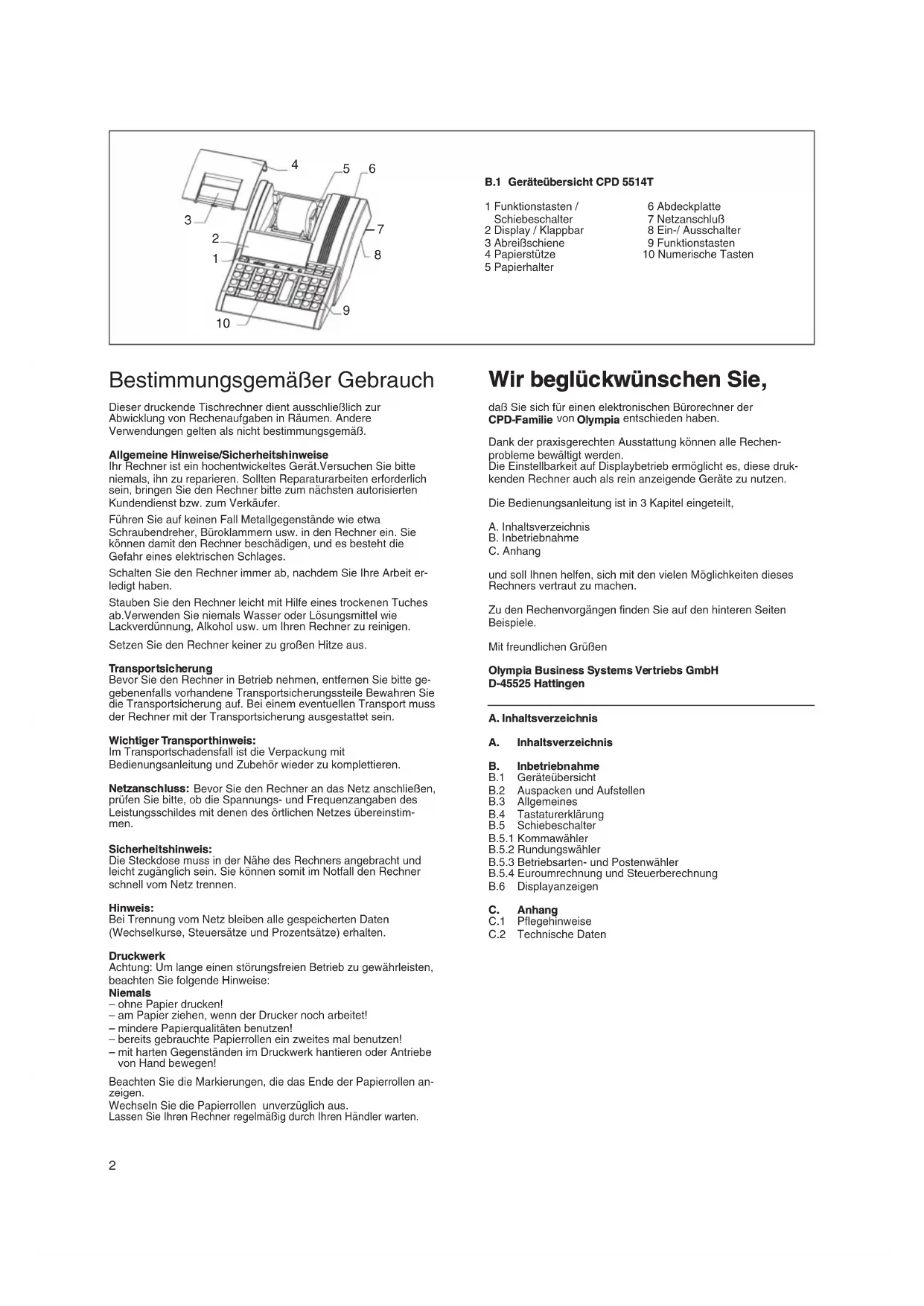 CPD 5514T - Taschenrechner OLYMPIA - Kostenlose Bedienungsanleitung