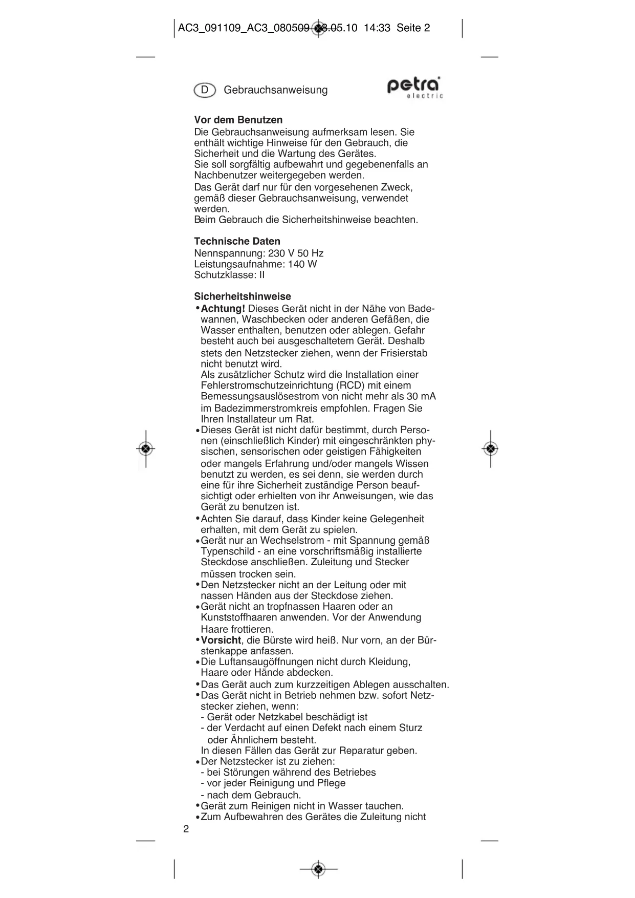 aircurl AC 3 AC3_091109_AC3_080509 18.05.10 14:33 Seite 1Vor dem Benutzen