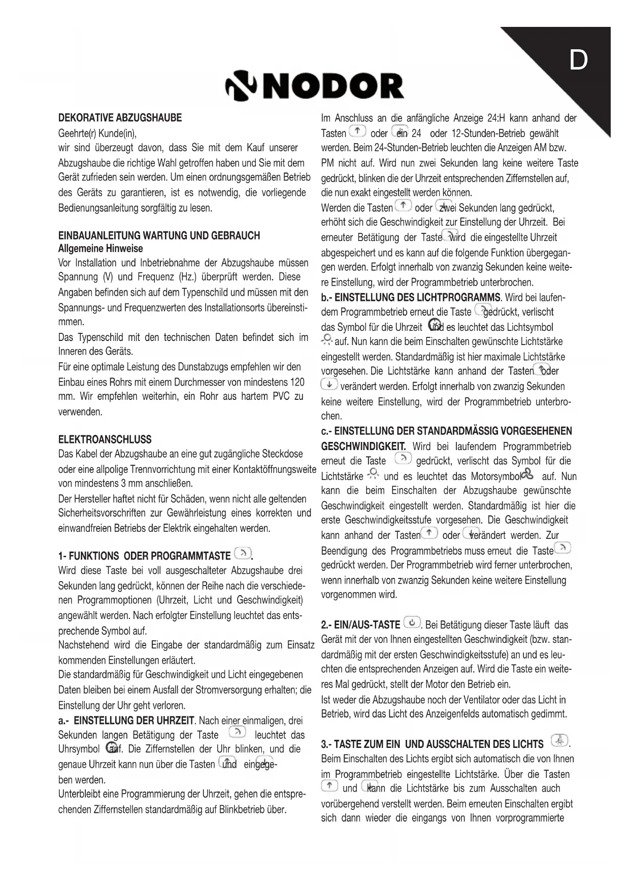 ISLA GAUDÍ - Dunstabzugshaube NODOR - Kostenlose Bedienungsanleitung