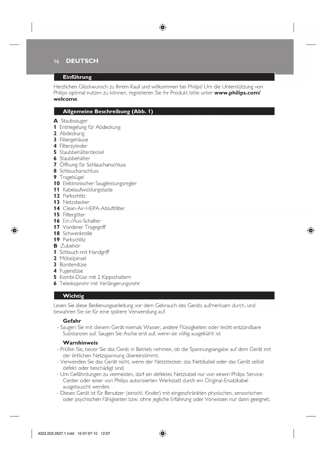 4222.003.3537.1.indd 17 07-07-10 12:073 Um das Rohr auf die Länge einzustellen, die für Sie beim Staubsaugen am bequemsten ist,